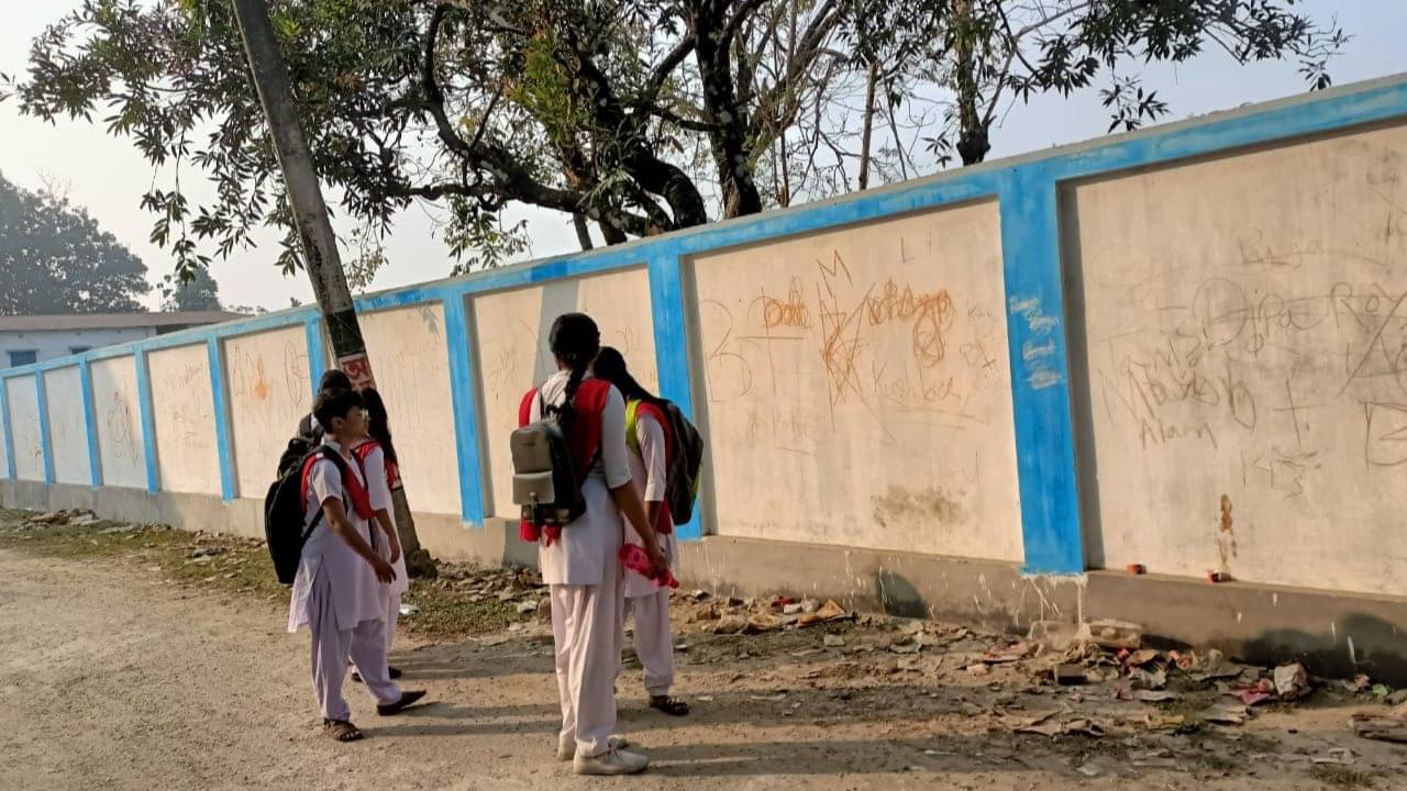 জলপাইগুড়ি: যে রাস্তা দিয়ে বিদ্যালয়ের ছাত্র ছাত্রীদের যাতায়াত। সেই রাস্তার গা ঘেঁষে থাকা দেওয়ালের ওপর লেখা রয়েছে অশ্রাব্য গালিগালাজ এবং নোংরা নোংরা ছবি।যারফলে স্কুলে যাওয়া আসার পথে মাথা নীচু করে যাতায়াত করে ছাত্রীরা। ডুয়ার্সের গয়েরকাটার ঘটনা। অশালীন সেই দেওয়াল দেখে রীতিমত হতবাক এলাকার জনপ্রতিনিধি থেকে শুরু করে অভিভাবকরাও।