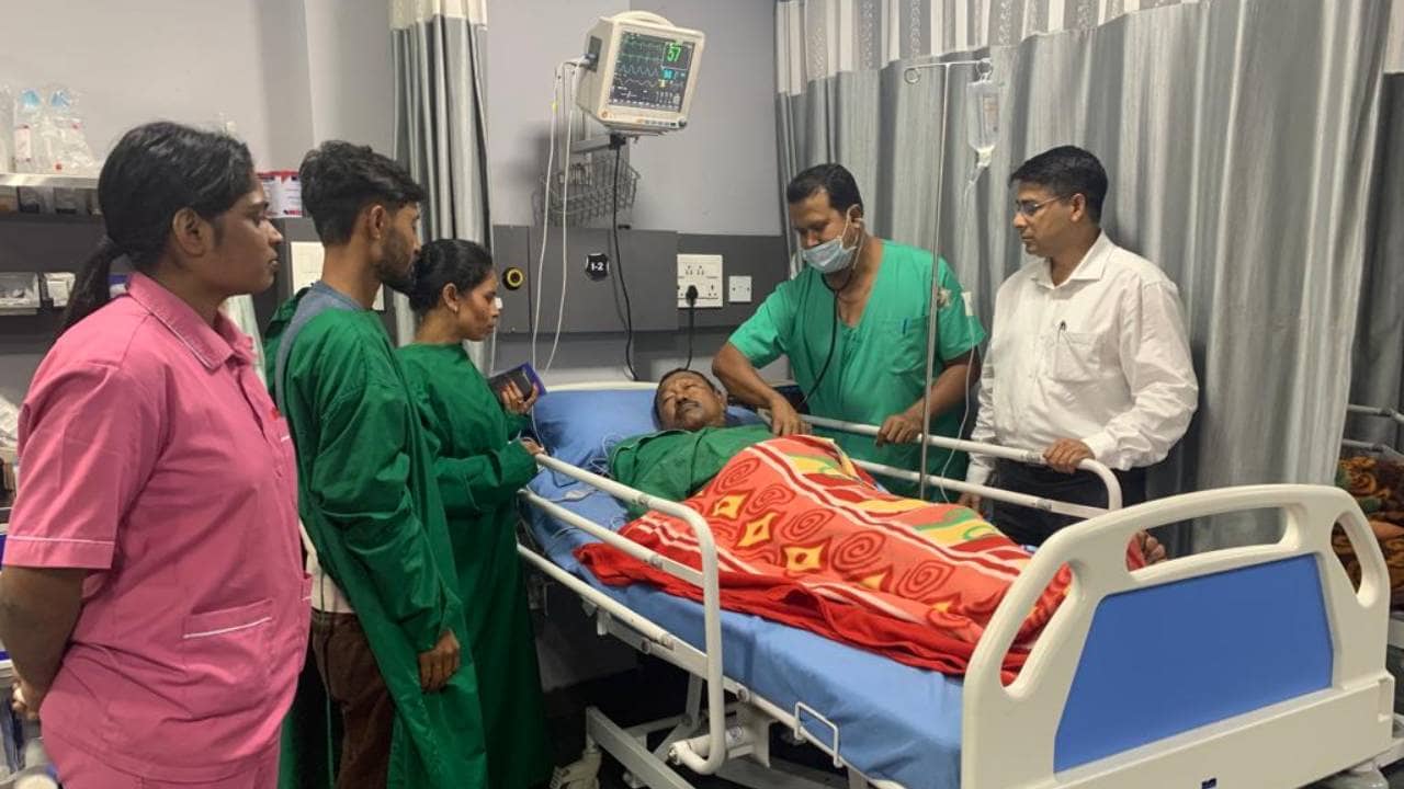 ক্রান্তিতে একটি মেলা হচ্ছে। সেই মেলায় একটি স্বাস্থ্য শিবিরের আয়োজন করেছেন করিমুল হক। তার জন্য গত কয়েকদিন অক্লান্ত পরিশ্রম করেন তিনি। এদিনও, রাজাডাঙা গ্রাম পঞ্চায়েতের ধলাবাড়িতে নিজের বাড়ি থেকে ওই মেলায় যাওয়ার জন্য প্রস্তুত হচ্ছিলেন তিনি। আচমকা অসুস্থ হয়ে পড়েন। দরদর করে ঘামতে থাকেন। তাঁর সঙ্গে থাকা চিকিৎসকরা পরীক্ষা করে স্থানীয় স্বাস্থ্যকেন্দ্রে নিয়ে যান। সেখানে প্রাথমিক চিকিৎসার পর তাঁকে শিলিগুড়ির একটি বেসরকারি হাসপাতালে নিয়ে যাওয়া হয়। আপাতত সেখানেই চিকিৎসাধীন তিনি। জানা গিয়েছে, হাসপাতালে নিয়ে যাওয়ার পথে বমিও করেন করিমুল হক। তবে আপাতত বিপন্মুক্ত তিনি।
