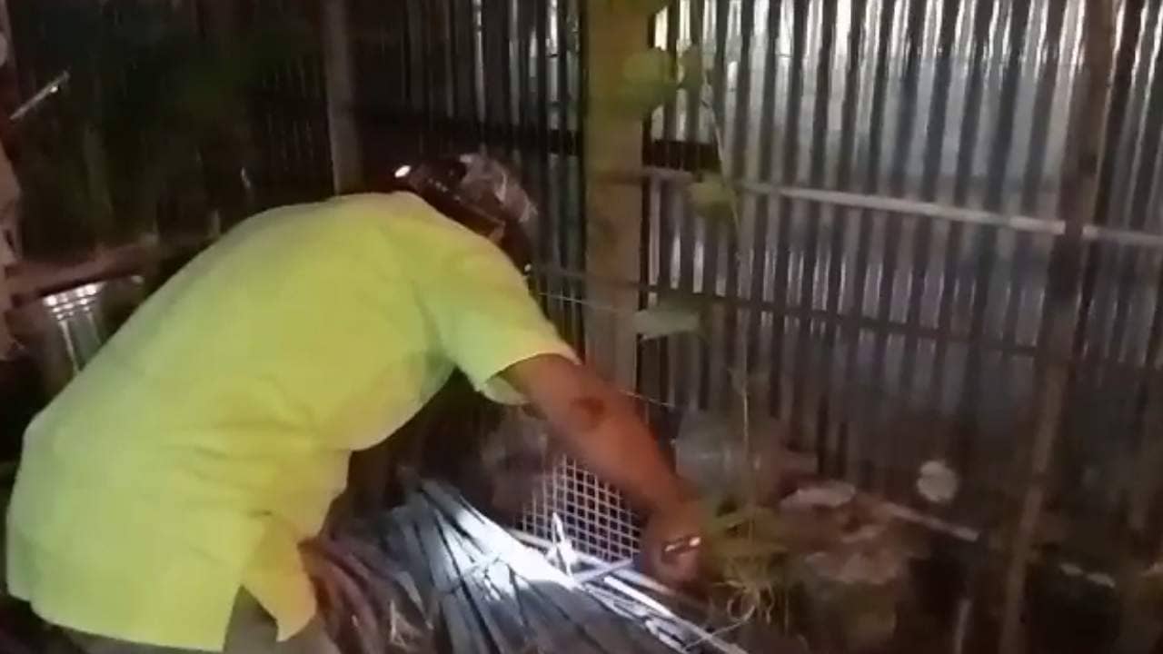 এরইমধ্যে শনিবার রাতে খাঁচার ভেতর থেকে আচমকা মুরগিগুলি তীব্র চিৎকার শুরু করে। ছুটে যেতেই খাঁচার ভেতর থেকে ফোঁস ফোঁস শব্দ শুনতে পাওয়া যায়। মোবাইলের লাইট জ্বালিয়ে ভালো করে লক্ষ্য করতেই দেখতে পান খাঁচার ভেতর একটি গোখরো সাপ কুন্ডলী পাকিয়ে বসে আছে। মুরগির ডিম খেয়ে পেট ফুলে ঢোল হয়ে আছে। ঘটনা দেখে হতবাক সকলে। রফিকুল ইসলাম বলছেন, “এই দৃশ্য দেখে প্রথমে তো আমরা খুবই ভয় পেয়ে যাই। তারপরই আমরা ডাকি পরিবেশ কর্মী বিশ্বজিৎ দত্ত চৌধুরীকে। তিনিই এসে সাপটিকে উদ্ধার করে নিয়ে যান।”