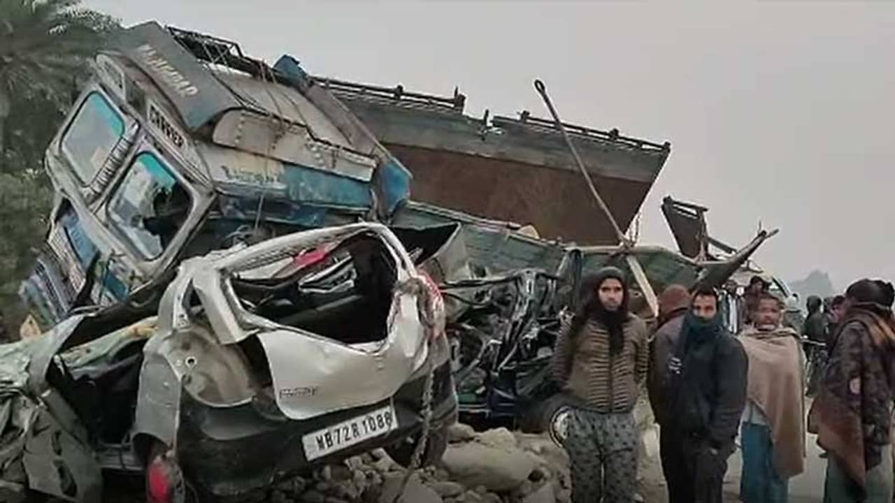 মঙ্গলবার রাতে ময়নাগুড়ি রানিরহাট মোড় এলাকা থেকে ধূপগুড়ি যাচ্ছিল কন্যাযাত্রীর পাঁচটি গাড়ি। জলঢাকা ব্রিজের কাছে ঘটে যায় ভয়ঙ্কর পথদুর্ঘটনা। একটি পাথরবোঝাই লরির ধাক্কায় দুমড়ে মুচড়ে যায় গাড়িগুলি। মৃত্য়ু হয় ১৪জনের। মৃতের তালিকায় রয়েছে চার শিশু, আটজন মহিলা ও দু’জন পুরুষ।