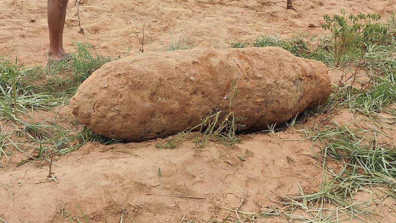 ঝাড়গ্রাম: ঝাড়গ্রামের গোপীবল্লভপুরের ভুলনপুর গ্রামে সুদূর বিস্তৃত চাষের জমি। সেই জমিতেই মাটি কাটার কাজ চলছিল শনিবার দুপুরে। আচমকা সেই সময়েই বিশালাকার ধাতব একটি বস্তু উঠে আসে মাটি নীচ থেকে। আর তা নিয়েই আতঙ্ক ছড়ায় এলাকাবাসীদের মনে। গ্রামবাসীদের সন্দেহ, মাটির নীচ থেকে বেরিয়ে আসা সিলিন্ডারের আকারের বিশাল ওই ধাতব বস্তুটি আসলে ব্রিটিশ আমলের বোমা। বিষয়টি নজরে আসতেই গ্রামবাসীরা সঙ্গে সঙ্গে খবর দেন পুলিশের কাছে।