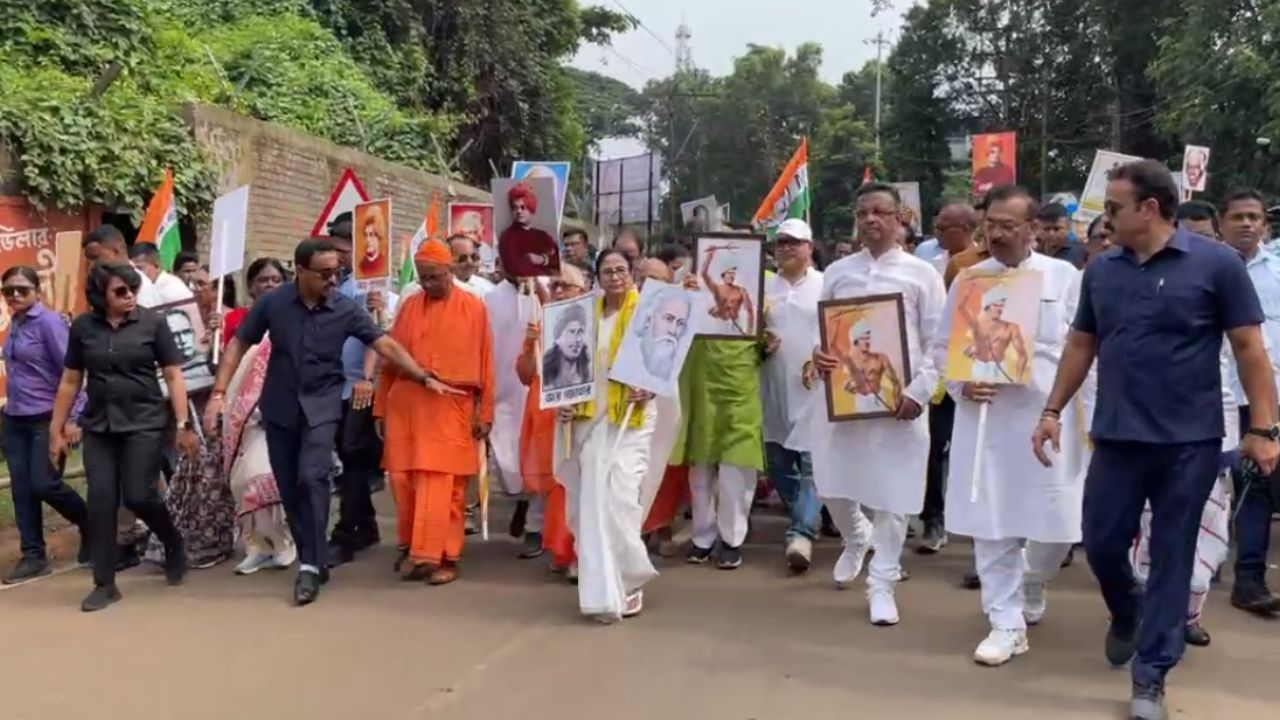 মিছিলে হাঁটছেন মুখ্যমন্ত্রী মমতা বন্দ্যোপাধ্যায়