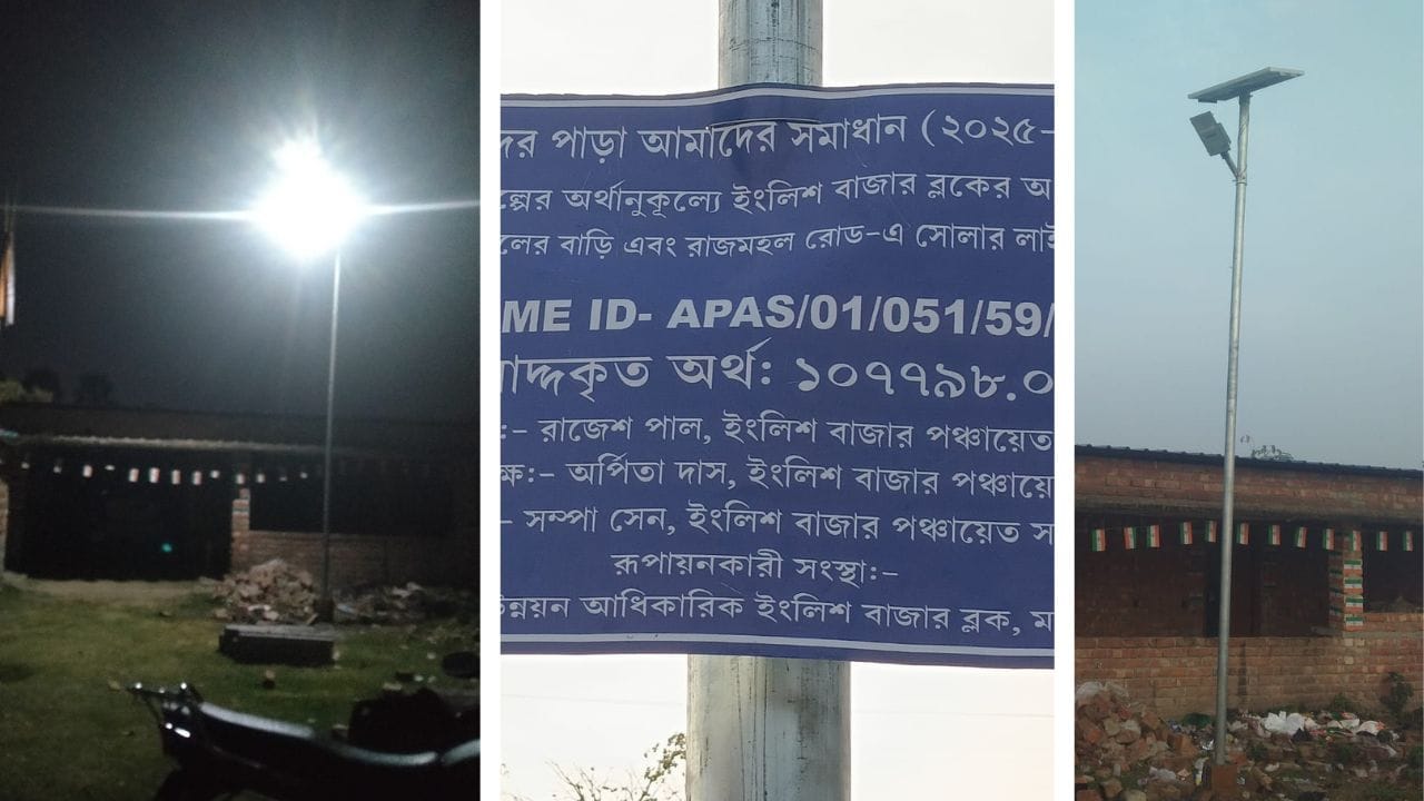 Malda: ‘আমাদের পাড়া’ প্রকল্প বরাদ্দ সোলার লাইট ‘চুরি’, কোথায় গেল? তৃণমূল নেতাদের বিরুদ্ধে থানায় অভিযোগ