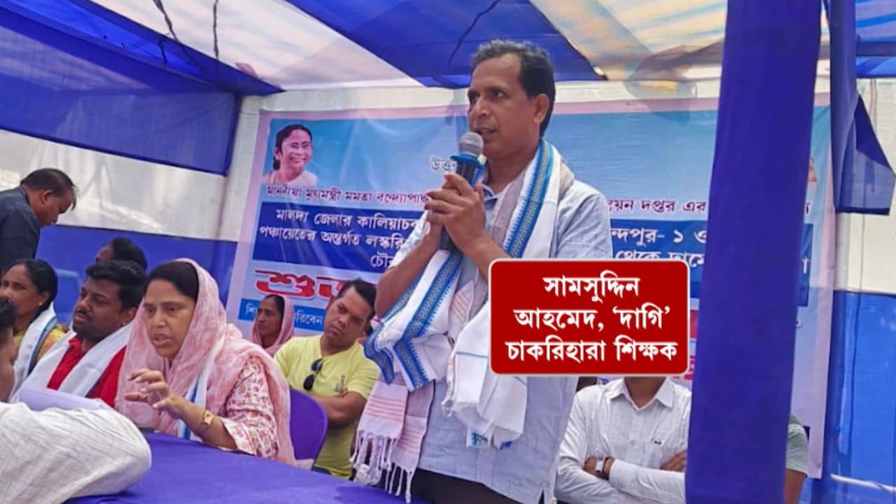 মালদহ: স্ত্রী মালদহ জেলা পরিষদের সদস্য। আর তাঁর নাম উঠেছে ‘দাগি’ শিক্ষকের তালিকায়। আর সেই ‘দাগি’ শিক্ষক শুধু নিজে টাকা দেননি, চাকরি দেওয়ার নামে নাকি লক্ষ লক্ষ টাকাও তুলেছেন বলে গুরুতর অভিযোগ উঠল। মালদহের মোথাবাড়ি এলাকা থেকে ‘দাগি’ শিক্ষক তথা তৃণমূল নেতা সামসুদ্দিন আহমেদ লক্ষ লক্ষ টাকা তুলেছেন বলে বিস্ফোরক অভিযোগ তুলছেন মোথাবাড়ির এলাকার মালদহ জেলা পরিষদের কংগ্রেস সদস্য সায়েম চৌধুরী।