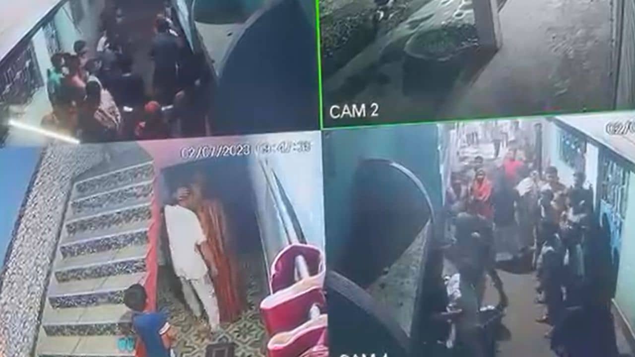 রাতেরবেলা হাঁসুয়া, লাঠি নিয়ে একদল দুষ্কৃতী প্রধানের বাড়িতে হানা দেয় বলে অভিযোগ। মূল দরজা বন্ধ ছিল। সিসিটিভিতে দেখা গিয়েছে, প্রধানের বাড়ির সামনের রাস্তায় পথচারীদের যাতায়াত চলছে। আচমকাই এক ব্যক্তি লাঠি নিয়ে ছুটে আসে। পিছন পিছন পিল পিল করে এসে হাজির হয় আরও কয়েকজন। সমানে দরজা ধরে টানাটানি শুরু করে দুষ্কৃতীরা। লাঠি দিয়ে মারতে থাকে দরজায়। লাথিও মারে কয়েকজন। কিছুক্ষণের মধ্যেই দরজা ভেঙে যায়। হুড়মুড়িয়ে ঘরে ঢুকে পড়ে তারা।