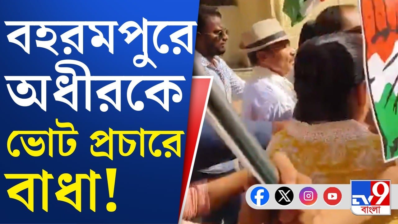 Adhir Chowdhury’s campaign: বহরমপুরে অধীর চৌধুরীকে প্রচারে বাধা, নেতার সামনেই হাতাহাতিতে জড়াল কংগ্রেস-TMC