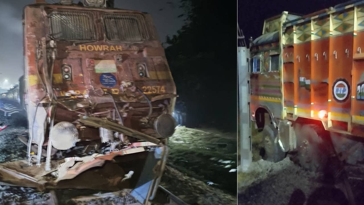 বালি বোঝাই লরিতে ট্রেনের ধাক্কা
