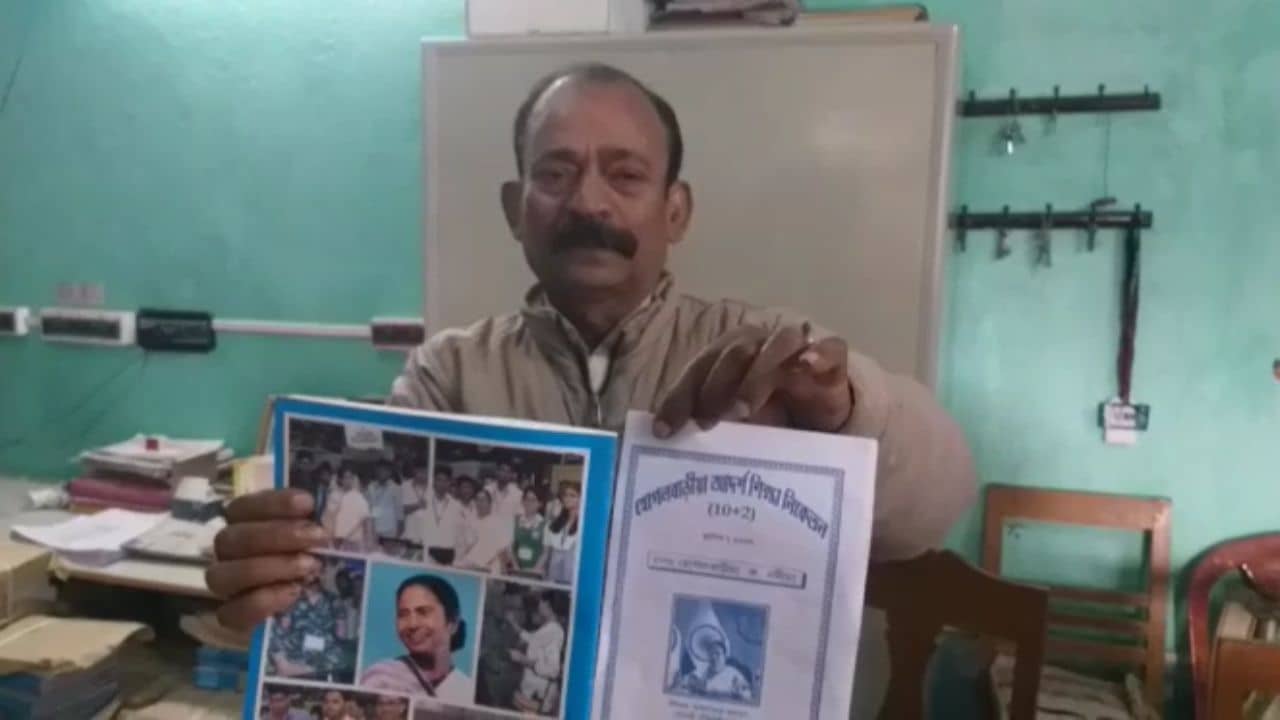 নদিয়ার হোগলবেরিয়া আদর্শ শিক্ষা নিকেতন বিদ্যালয়। ওই বিদ্যালয়ের প্রধান শিক্ষককের পদে কর্মরত গিরীন্দ্রনাথবাবু। এর আগেও পাঠ্য পুস্তকে মমতা বন্দ্যোপাধ্যায়ের ছবি ছাপিয়ে বিতর্কে জড়িয়ে ছিলেন তিনি। পাঠ্যপুস্তকে নিজের দায়িত্ব নিয়ে ছবি ছাপানোয় কয়েকজন পড়ুয়া প্রতিবাদ করেন। সেই সময় ওই ছাত্রছাত্রীদের মারধরের অভিযোগ ওঠে প্রধান শিক্ষককের বিরুদ্ধে। ছাত্র-ছাত্রীদের অভিভাবকরা এসে পরবর্তীকালে বিদ্যালয়ে বিক্ষোভ দেখিয়েছিলেন। প্রধান শিক্ষককের জবাব ছিল রাজ্যের মুখ্যমন্ত্রী তিনি। তিনি গোটা রাজ্যটা চালাচ্ছেন। তার অধীনে পুলিশ থেকে শুরু করে শিক্ষা ব্যবস্থা সবকিছুই চলছে। রাজ্যের সাধারণ মানুষ একাধিক প্রকল্পের সুবিধা পাচ্ছেন। তাহলে কেন মুখ্যমন্ত্রীর ছবি থাকবে না পাঠ্যপুস্তকের প্রথমে।