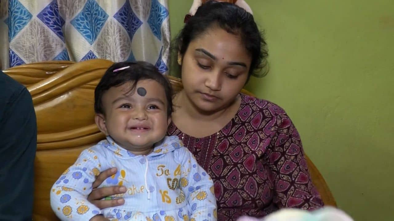 নদিয়া: ছোট্ট অস্মিকা। নামের মাধুর্য্য রেখে আক্ষরিক অর্থেই যেন চাঁদপানা মুখ। গোল গোল চোখ করে যখন তাকিয়ে থাকে মুখের দিকে, প্রাণ ভরে আসে! আর অস্মিকা শুধু এতটুকুই পারে! এই তো, দু’দিন আগে অস্মিকার এক বছর বয়স হল। কেকও কাটল মায়ের হাত ধরে। নাহ, বলা ভালো, মা তার হাত ধরে কেক কাটাল। একমাত্র মেয়ের প্রথম জন্মদিন, বাবা-মায়ের তো উচ্ছ্বাসের আত্মিহারা হওয়ার কথা! নাহ, তেমনটা হলেন না। বরং তাঁদের চোখে জল। অস্মিকা যত বড় হচ্ছে, বুকের ভিতরটা ঢিপ ঢিপ করছে ওঁদের। রাতে চোখের পাতা এক করতে পারেন না দুশ্চিন্তায়। আর দিনে ঘুমন্ত অস্মিকার মুখ দেখলে ঝাপসা হয়ে আসে চোখ। হাতে আর সময় মাস ছয়েক। সেই সময়ের মধ্যেই যে অস্মিকাকে একটা ইঞ্জেকশন দিতে হবে। না, আর পাঁচটা ভ্যাক্সিন নয়, ১৬ কোটি মূল্যের একটা ইঞ্জেকশন। আর যেটা না দিতে পারলে, অস্মিকা সত্যিই আর পারবেন না উঠে বসতে, নড়াচড়া করতে কিংবা হাঁটাচলা তো দূরের কথা! এক বছরের অস্মিকা এই বয়সেই অসম লড়াইয়ে নদিয়ার রানাঘাটের অস্মিকা দাস। বাবা মায়ের আদুরে মেয়ে এক বিরল রোগের সঙ্গে যুক্ত করছে। ছোট্ট শরীরে বাসা বেঁধেছে বিশ্বের অন্যতম জটিল বিরল রোগ স্পাইনাল মাসকুলার অ্যাট্রোফি (SMA) টাইপ ওয়ান।