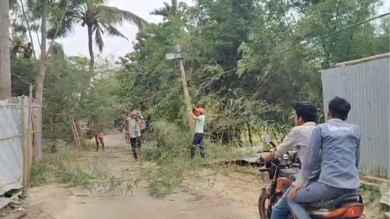শনিবার রাতে হঠাৎ কালো মেঘে ছেয়ে যায় গোটা এলাকা। শুরু হয় ঝড়ো হাওয়া। এরপরই হঠাৎ কিছুক্ষণ দমকা হাওয়া বইতে থাকে। আচমকা কিছু বুঝে ওঠার আগেই বাড়ির চাল উড়ে চলে যায়। ছোট ছোট বাচ্চাদের নিয়ে প্রাণভয়ে ছুটে পালান এলাকাবাসী। এক-এক করে প্রায় ১০ টি বাড়ি ভেঙে তছনছ হয়ে যায়।