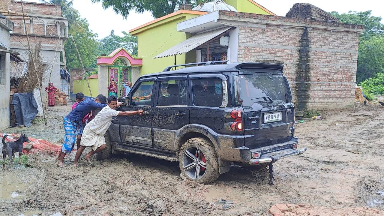 প্রায় দশ থেকে পনেরো মিনিটের চেষ্টায় শেষ পর্যন্ত উদ্ধার করা যায় গাড়িটিকে। তারপর জল দিয়ে ধুয়ে নেওয়া হয় গাড়ির চাকা ও বডির নিচের অংশ। স্বাভাবিকভাবেই এ ঘটনায় প্রশ্ন উঠছে এলাকার রাস্তাঘাটের মান নিয়ে।
