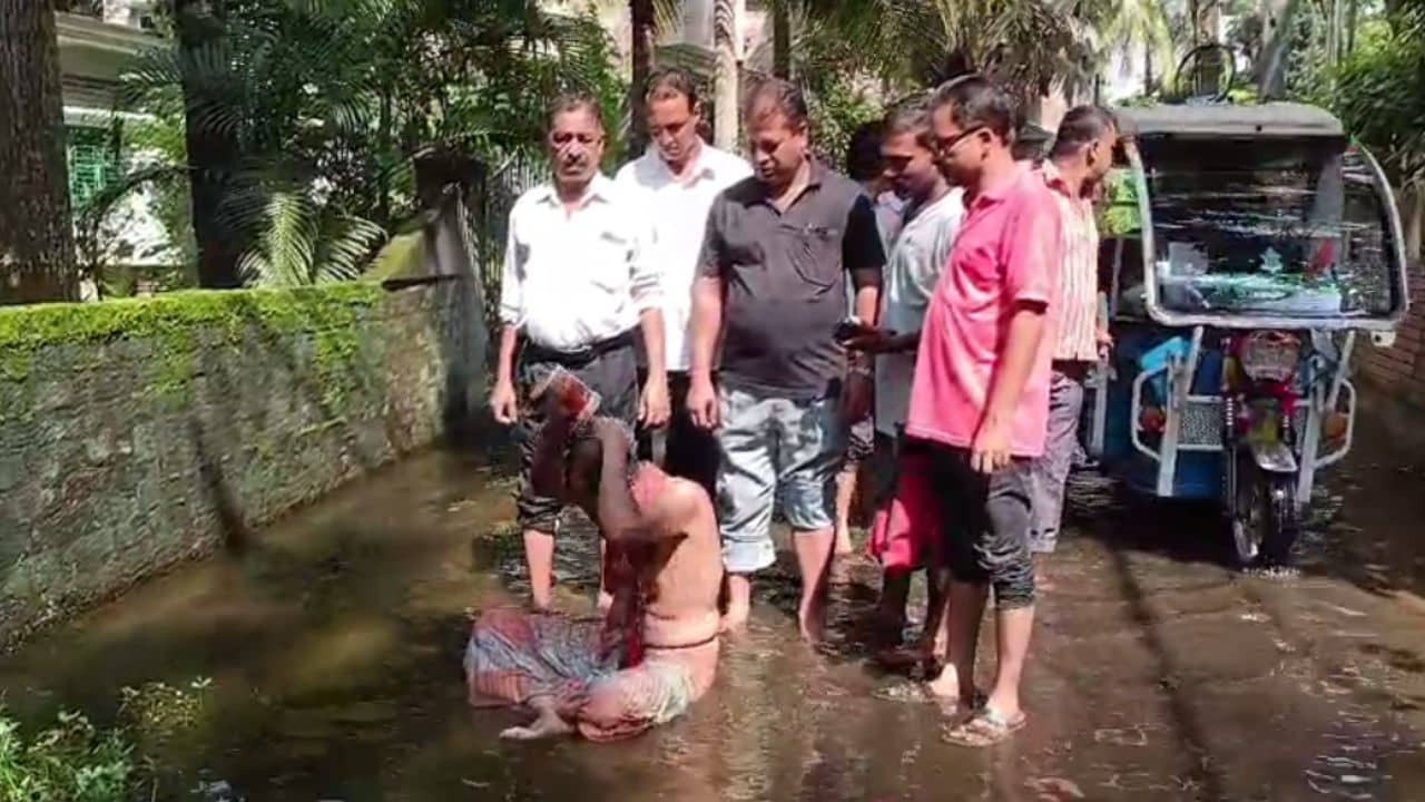 গোবরডাঙা: রাস্তার এক পাশ থেকে চলছে টোটো। আর একপাশে বসে রয়েছেন বিজেপি নেতা রীপন কুমার। জমা জল তুলে গামছা পরে মগ নিয়ে বসে স্নান করছেন তিনি। কিন্তু কেন? আসলে নিম্নচাপের বৃষ্টির জেরে জল জমেছে ওয়ার্ডে। তবে বৃষ্টি বন্ধ হলেও জল রয়েছে যেমনকার তেমন। তার উপর আবার ডেঙ্গির বাড়-বাড়ন্ত। তাই প্রতীকী প্রতিবাদ করতে এ দিন নর্দমার জলে স্নান করলেন তিনি।