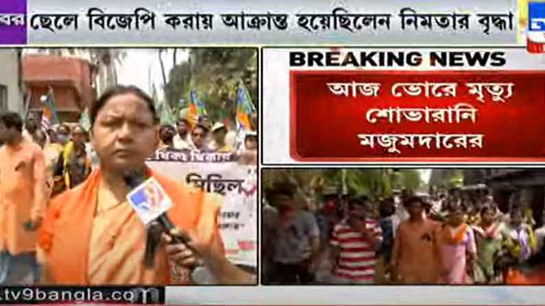 সোমবার ভোরে মৃত্যু হয় নিমতার পাটনা ঠাকুরতলার আশি বছরের বৃদ্ধা শোভারানি মজুমদারের। তৃণমূলের বিরুদ্ধে সুর চড়িয়ে নিমতায় দেহ নিয়ে মৌন মিছিল বার করেন বিজেপি কর্মী সমর্থকরা। স্থানীয় দলীয় কার্যালয়ে নিয়ে যাওয়া হয় তাঁর দেহ। স্থানীয় বিজেপি নেতৃত্ব বলে, ভোরে ওই বৃদ্ধার সেরিব্রাল অ্যাটাক হয়। মারধরে মাথায় আঘাত লেগেছিল, আর তা থেকেই মৃত্যু বলে অভিযোগ করে তারা। বিজেপি কর্মী সমর্থকরা নিমতা থানা ঘেরাও কর্মসূচি নেন। বিজেপি নেতা সায়ন্তন বসুর নেতৃত্বে থানার সামনে টায়ার জ্বালিয়ে চলতে থাকে বিক্ষোভ। ৭২ ঘণ্টার মধ্যে অভিযুক্তদের গ্রেফতার করা না হলে আগামী দিনে বড় আন্দোলনের পথে যাওয়ার হুঁশিয়ারি দেন তিনি।