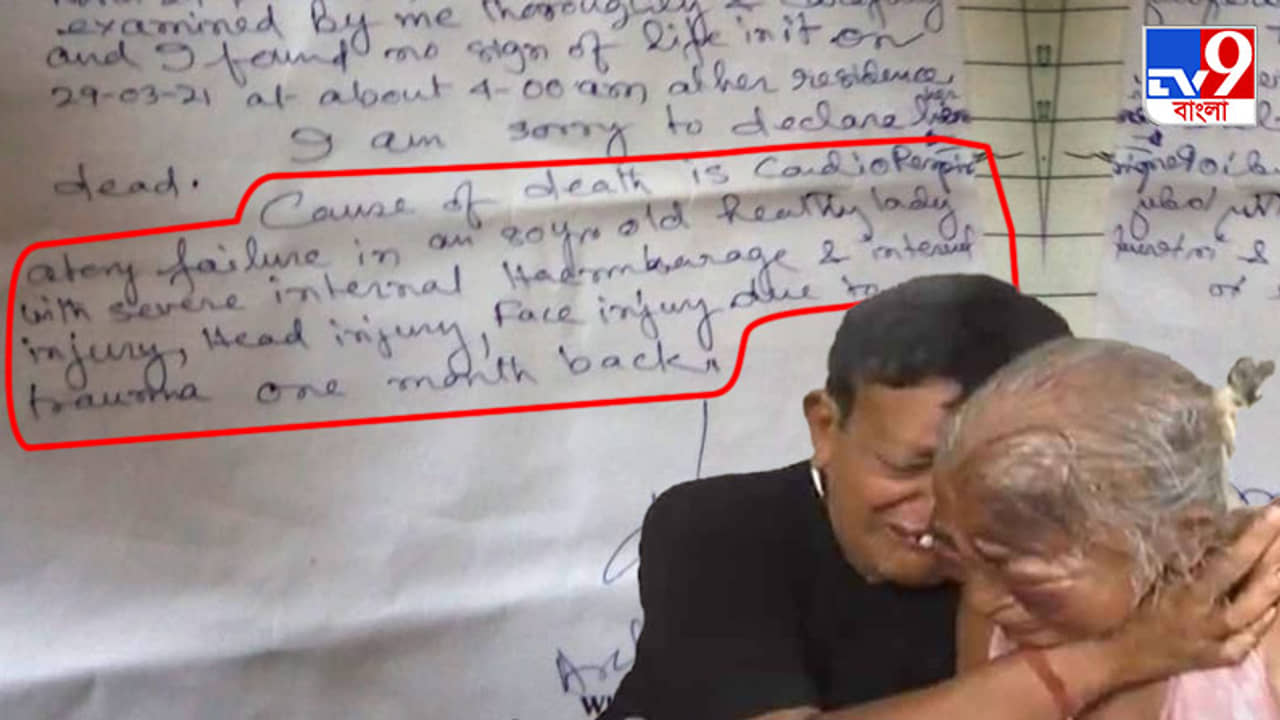 রিপোর্টে বলা হয়েছে, কার্ডিয়াক অ্যাটাকের জেরেই মৃত্যু হয়েছে নিমতার পাটনা ঠাকুরতলার আশি বছরের বৃদ্ধা শোভারানি মজুমদারের। তবে এর পাশাপাশি ডেথ সার্টিফিকেটে কয়েকটি বিষয় উল্লেখ করা হয়েছে। একাধিক জায়গায় অভ্যন্তরীণ আঘাত। তার জেরে বৃদ্ধার শরীরের নানা অঙ্গ বিকল হয়ে যায়। এক মাসের আঘাত তিনি সহ্য করতে পারেননি। ট্রমা ছিল। তার জেরে সোমবার সকালে আরও একবার মস্তিষ্কে রক্তক্ষরণ হয়। আর তার জেরেই মৃত্যু।