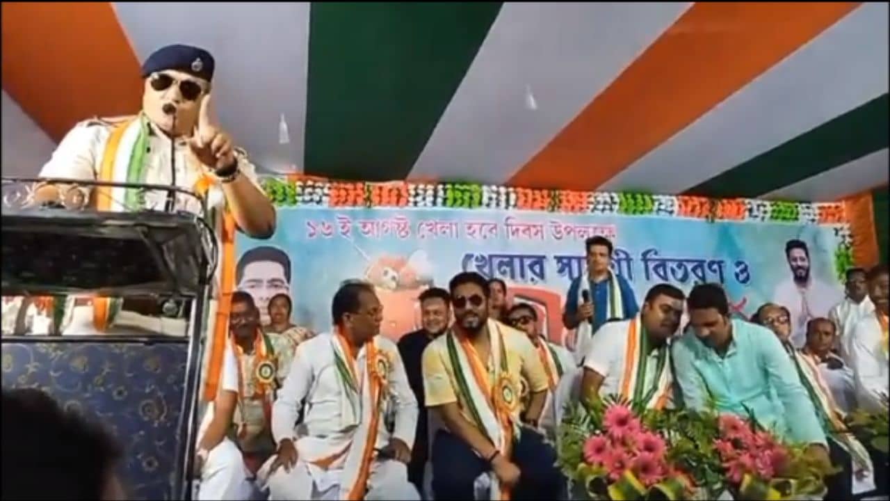 খড়দহে ‘খেলা হবে দিবস’-এর অনুষ্ঠানের মঞ্চ থেকে বক্তব্য পেশ করেন খড়দহ থানার ভারপ্রাপ্ত ওসি রাজকুমার সরকার। একই মঞ্চে ছিলেন ব্যারাকপুরের বিধায়ক রাজ চক্রবর্তী। সেই মঞ্চ থেকেই তৃণমূলের কর্মীদের ওসি বুঝিয়ে দিলেন, কী করতে হবে আর কোনটা করা যাবে না।