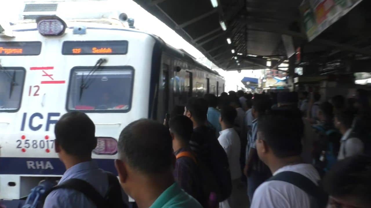 আজ, মঙ্গলবার। সপ্তাহের দ্বিতীয় কর্মদিবস। এদিন স্টেশন থেকে ট্রেন সর্বত্রই চোখে পড়ল ভিড়। তিন আসনের সিটে চারজনকে বসতে হচ্ছে, যাত্রীরা বলছেন, ‘এটাই ট্র্যাডিশন’। এসির মধ্যেও ঘাম দেওয়ার মতো অবস্থা! তাই যাত্রীরা চান, এই রুটে অন্তত অফিস টাইমে আরও বাড়ানো হোক ট্রেন।
