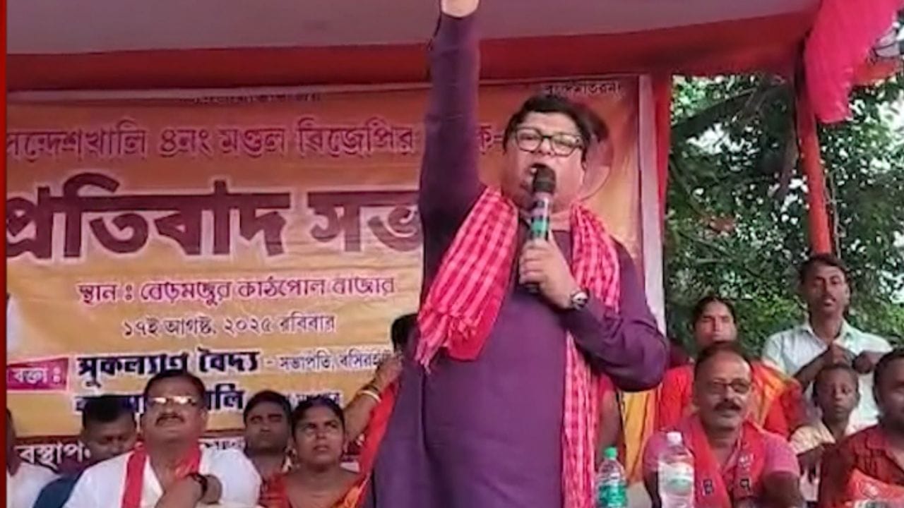 Sandeshkhali: ‘রোহিঙ্গা-সহ তৃণমূলের নেতাদের গাছে বেঁধে জল বিচুটি লাগিয়ে বাংলাদেশে পাঠাব’, বিতর্কিত মন্তব্য বিজেপি নেতার