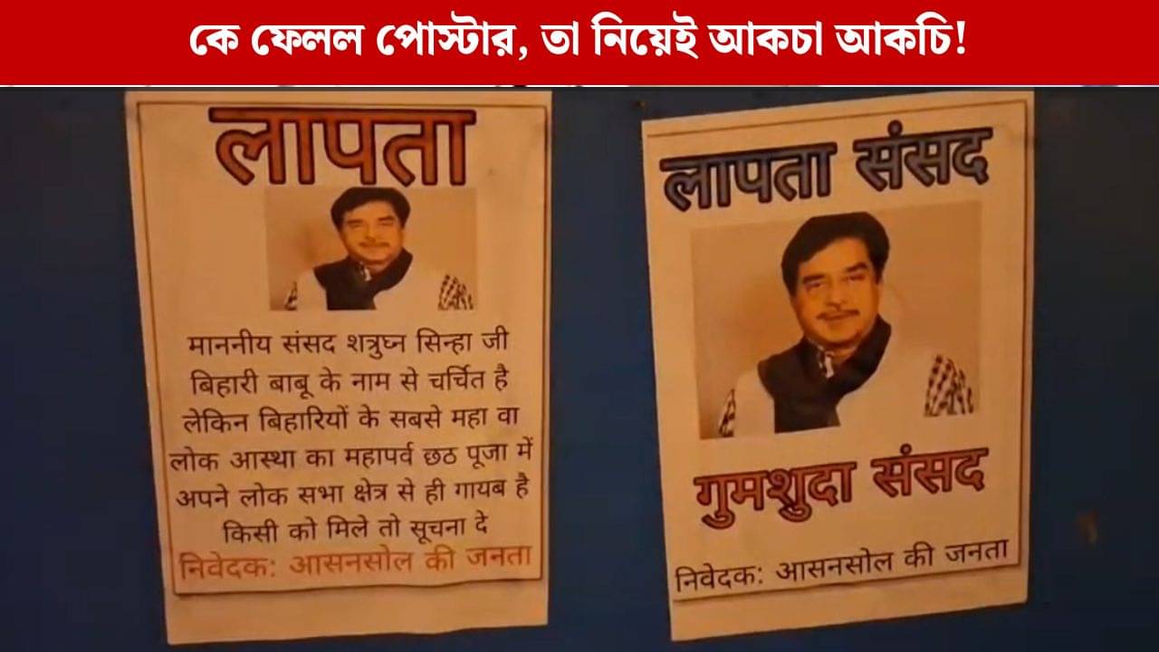 আসানসোল: লাপাত্তা বিহারীবাবু! ছটপুজোর সময় আসানসোলের তৃণমূল সাংসদ শত্রুঘ্ন সিনহা নিখোঁজ। এমনই নিখোঁজ পোস্টার দেখা গেল কুলটি ও বরাকরে। কুলটি স্টেশন সংলগ্ন এবং বরাকর বাসস্ট্যান্ড সংলগ্ন এলাকায় সাংসদ শত্রুঘ্ন সিনহা নিখোঁজ পোস্টার দেখা গেল। পোস্টারের নীচে লেখা “আসানসোল কী জনতা”! তবে এই জনতা কারা, তা অবশ্য রহস্যময়।