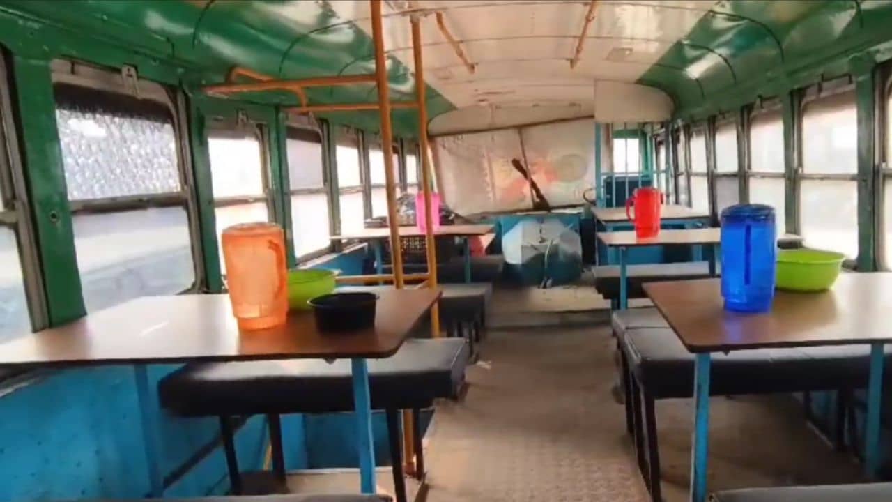বাসের ভিতরে লোহার অ্যাঙ্গেল দিয়ে তৈরি করা হয়েছে বেঞ্চ ও টেবিল। বাসটির পাশে একটি শেড তৈরি করে দেওয়া হয়েছে। সেখানে রান্না করেন স্বনির্ভর গোষ্ঠীর মহিলারা। তাঁরাই খাবার পরিবেশন করেন। পাঁচ টাকার বিনিময়ে মেলে ভাত, ডাল, সব্জি ও ডিমের ঝোল। প্রতিদিন গড়ে ৩০০ জন মধ্যাহ্নভোজ সারেন এই ক্যান্টিনে।