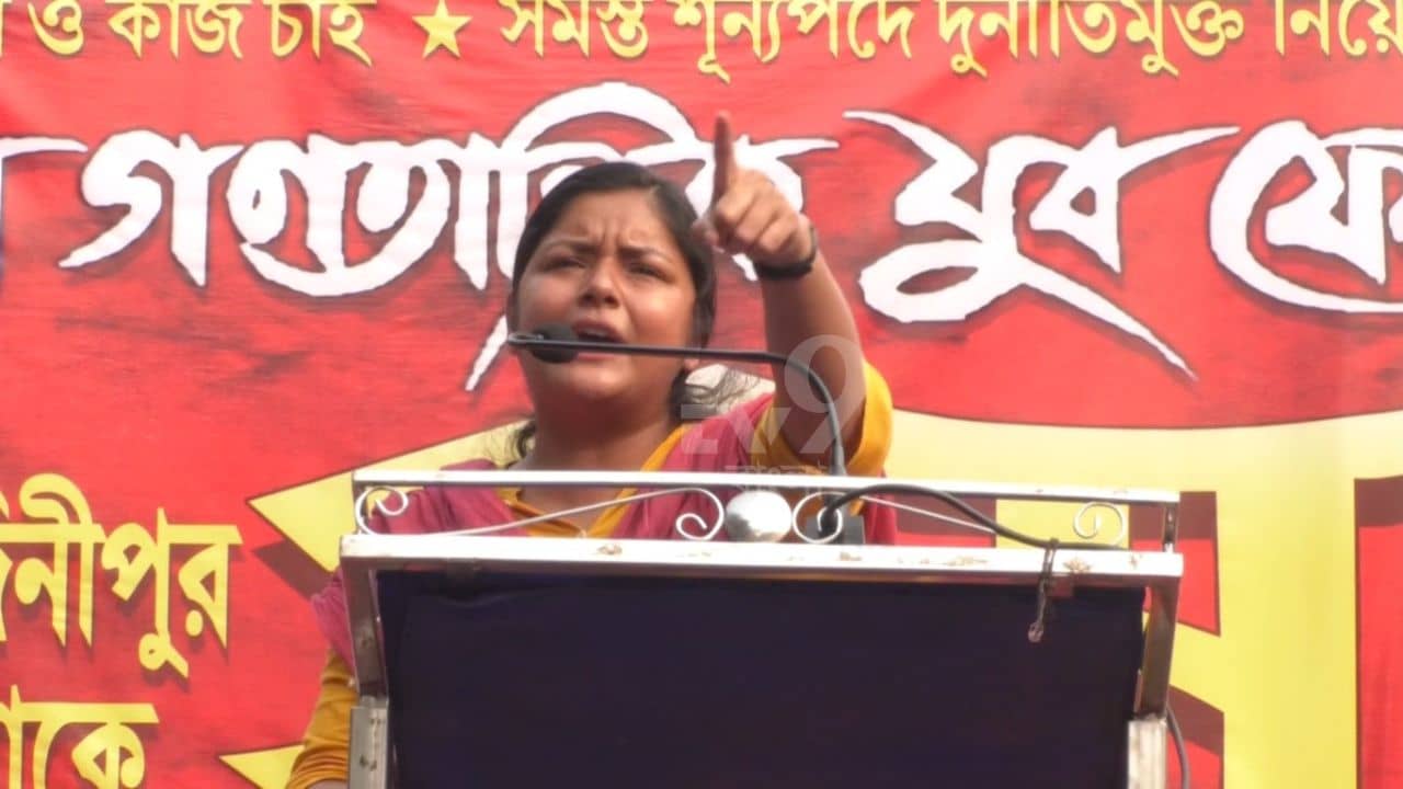 মেদিনীপুর: পঞ্চায়েত ভোটের (Panchayet Election 2023) আগে সব রাজনৈতিক দলগুলি নিজেদের মতো করে ঘুঁটি সাজাতে শুরু করে দিয়েছে। বিধানসভায় নিশ্চিহ্ন হয়ে যাওয়া বামেরাও ঘুরে দাঁড়ানোর মরিয়া চেষ্টা চালাচ্ছে। জেলায় জেলায় চলছি শক্তি প্রদর্শনের পালা। এদিন মেদিনীপুর শহরে ডিওয়াইএফআই-এর (DYFI) তরফে একটি যুব সমাবেশের আয়োজন করা হয়েছিল। মূল ইস্যু ছিল শাসক দলের বিরুদ্ধে দুর্নীতির অভিযোগ। সেই মঞ্চ থেকেই শাসক শিবিরের উদ্দেশে ঝাঁঝালো আক্রমণ শানালেন বাম যুব নেত্রী মীনাক্ষী মুখোপাধ্যায় (Minakshi Mukherjee)। বললেন, “বামপন্থীরা লড়ছে। রাজ্যজুড়ে লড়ছে। গোটা রাজ্যে শুরু হয়েছে পাল্টা… কোথাও গাঁছে বেঁধে, কোথাও গলায় গামছা দিয়ে। বেশি ট্যাঁ ফুঁ করো না। যেদিন উন্মত্ত জনতা টেংরি ছাড়িয়ে নেবে, সেদিন বুঝবে।”