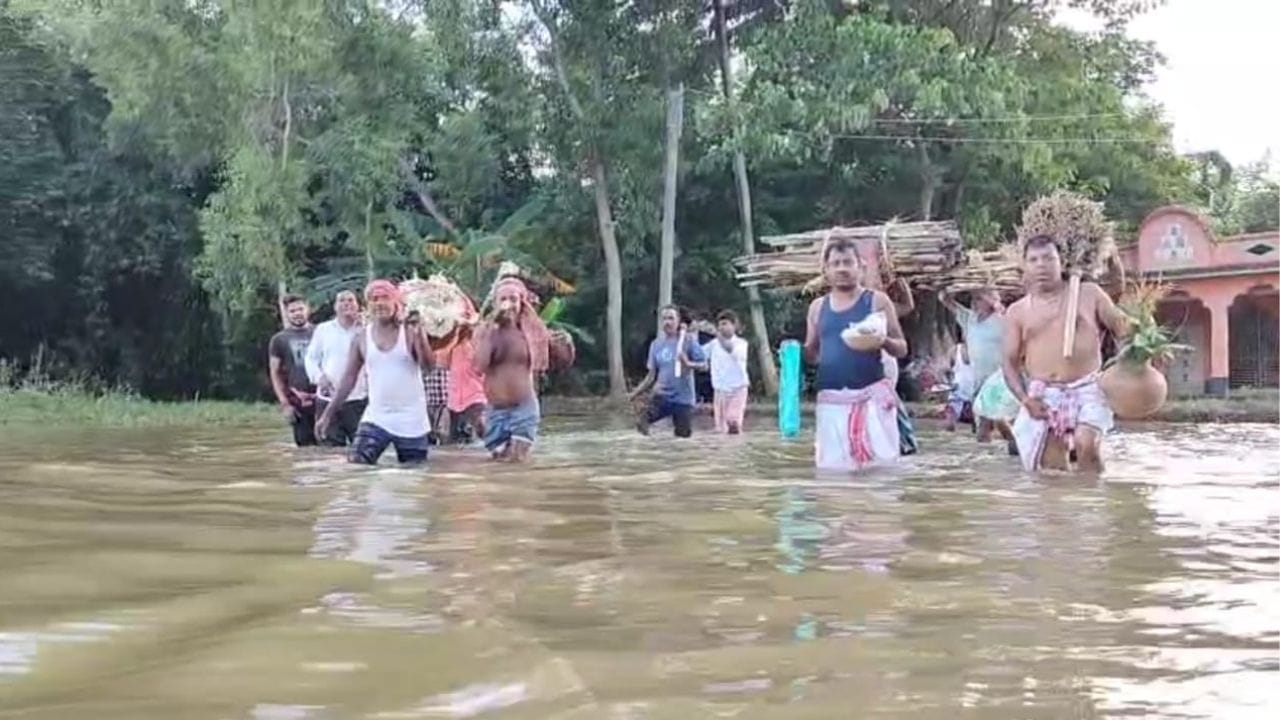 রবিবার রাতে হৃদরোগে আক্রান্ত হয়ে মারা যান বিষ্ণুপুরের বছর ছেষট্টির বৃদ্ধ নরেশ পোড়ে। বাড়িতে শোকের ছায়া। কিন্তু সেই শোককেও হার মানিয়েছে মৃৎদেহ সৎকারের চিন্তা। গ্রামের একমাত্র শ্মশানে যাওয়ার রাস্তার হাল বেহাল। কোমর সমান কাদা জল পেরিয়ে সোমবার বিকেলে সেই দেহ সৎকার করলেন গ্রামের মানুষ। গ্রামের একমাত্র শ্মশান যাওয়ার রাস্তার ভয়ঙ্কর অবস্থা। সেই বেহাল ছবি ইতিমধ্যে সোশ্যাল মিডিয়ায় ভাইরাল হয়েছে। কাদায় ভরা সংকীর্ণ রাস্তা দিয়ে মরদেহ বয়ে নিয়ে যাওয়া কার্যত অসম্ভব। তাই বাধ্য হয়ে জল থৈথৈ মাঠের মাঝখান দিয়েই বহুকষ্টে বৃদ্ধের মৃতদেহ বহন করে সৎকার সারলেন গ্রামের মানুষ।