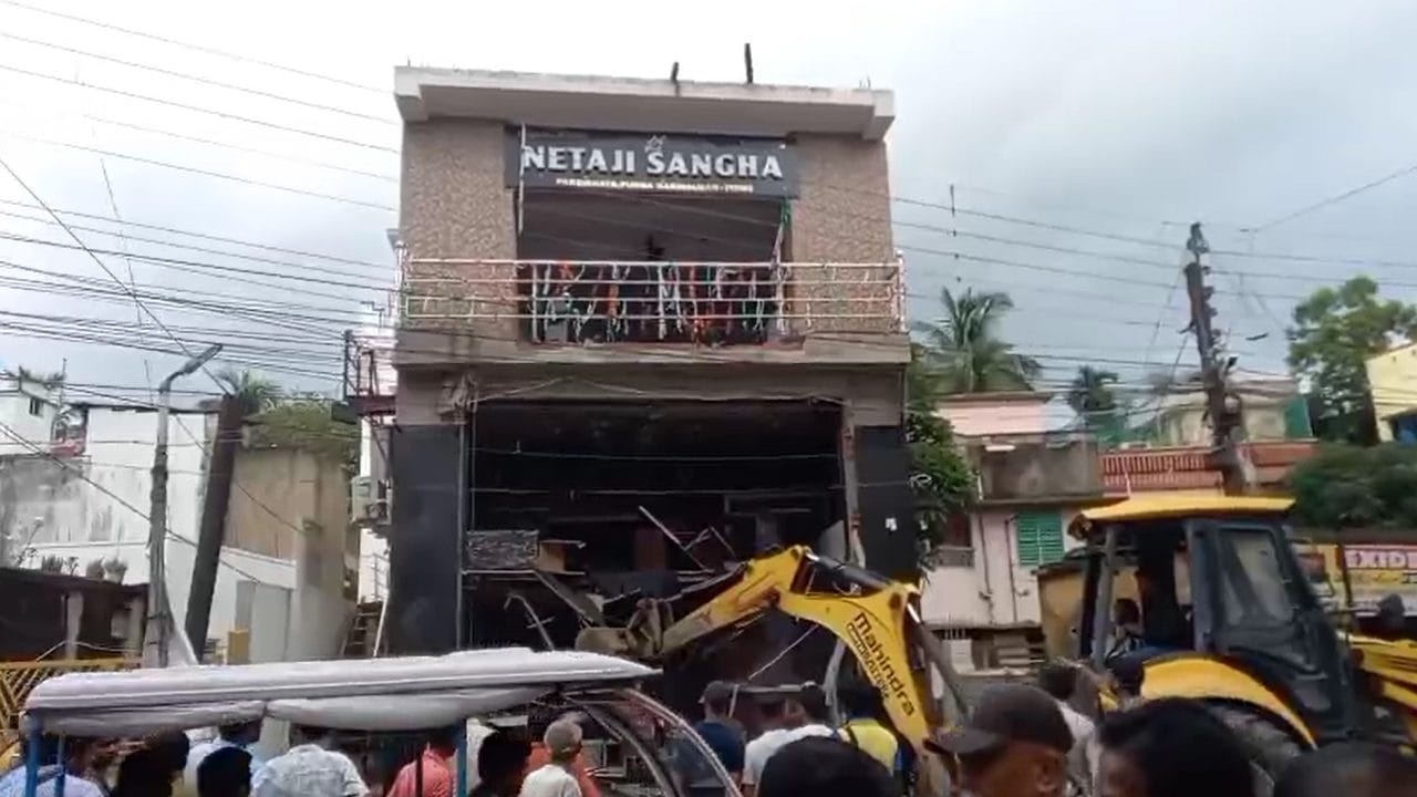 পুরো ঘটনা বর্ধমান শহরের পারবীরহাটার কাছে। বর্ধমান তেলিপুকুর রোডের ধারে ছিল নেতাজি সংঘের একতলা ক্লাবঘর। ওই ক্লাবের বিরুদ্ধেই ওই তিনতলা বাড়ি তৈরি অভিযোগ রয়েছে। ওই ক্লাবের সামনেই ছিল বিবেকানন্দের পূর্ণাবয়ব মূর্তি। অভিযোগ, মূর্তি সরিয়ে সেই জায়গায় গজিয়ে উঠেছিল ওই বেআইনি তিনতলা বিল্ডিং। পুরসভার আইন অফিসার তন্ময় তা বলছেন, পুরো কাজটাই বেআইনি। বাড়ি ভাঙার জন্য ক্লাবকে নোটিসও দেওয়া হয়েছিল বর্ধমান পৌরসভার তরফে। জল গড়ায় হাইকোর্টে। গিয়েছিল ক্লাবের লোকজন। কিন্তু বিশেষ সুবিধা করতে পারেনি। এরইমধ্যে বাড়ি ভাঙার সময়সীমাও বেঁধে দেওয়া হয় পুরসভার তরফে। এবার টাইম ফুরোতেই ভেঙে দেওয়া হল গোটা বাড়ি। বাড়ি ভাঙার কাজ দেখতে রীতিমতো ভিড় জমে যায় এলাকায়।