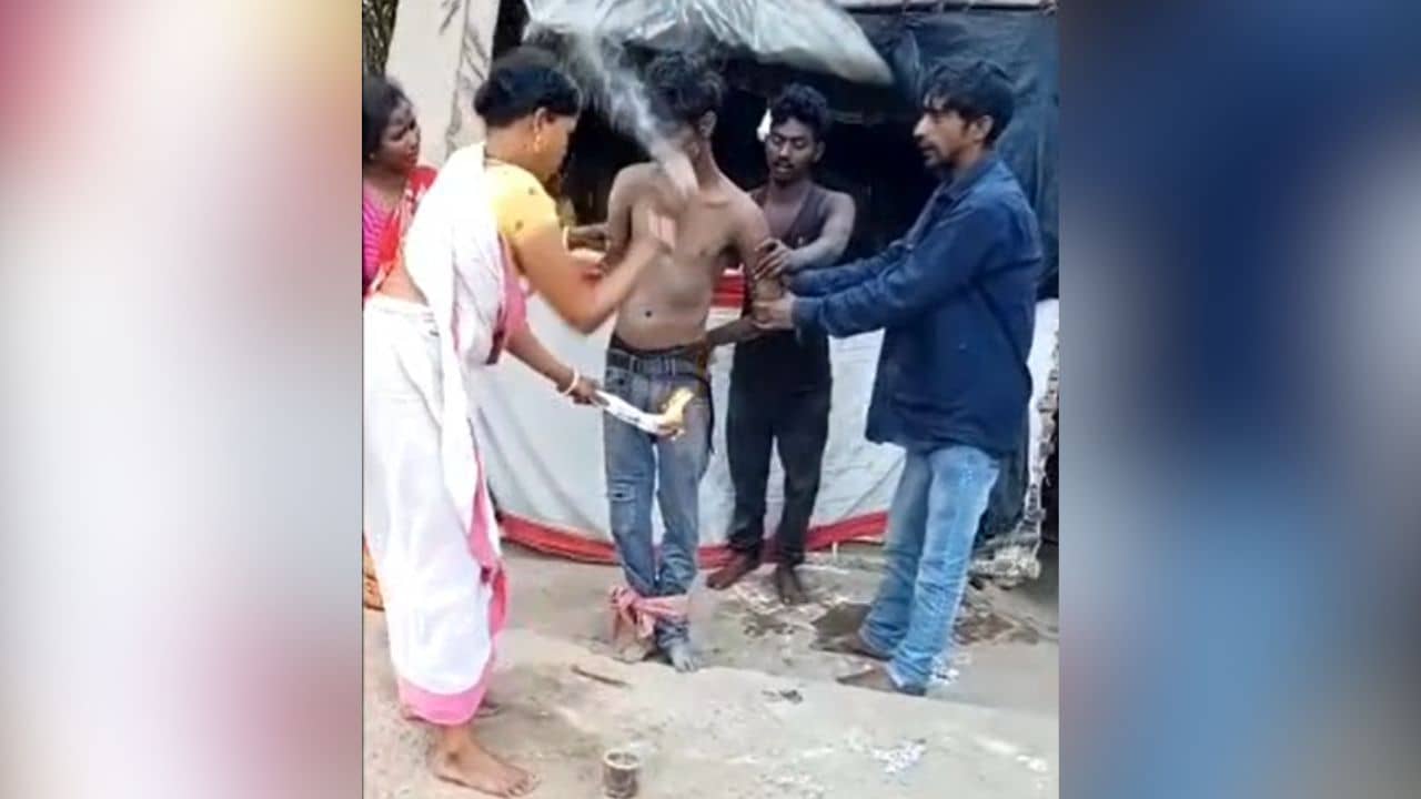 ঘটনাটি কালনা থানার কালনা দু’নম্বর ব্লকের বৈদ্যপুর গ্রাম পঞ্চায়েতের তালা গ্রামে। জানা গিয়েছে, গ্রামের যুবক রাকেশ ক্ষেত্রপাল গত কয়েকদিন ধরেই অস্বাভাবিক আচরণ করছিলেন। বছর বাইশের ওই যুবককে ভূতে ধরেছে বলে সন্দেহ হয় পরিবারের। গ্রামেরই এক মহিলা ওঝার কাছে নিয়ে আসা হয় তাঁকে। মহিলা ওঝার নির্দেশে যুবককে খালি গায়ে থাকা অবস্থায় তাঁর হাত ও পা বেঁধে রাখে কয়েকজন। এক সময় দেখা যায় বেঁধে রাখা অবস্থায় ওঝা আগুন জ্বালিয়ে যুবককে ছ্যাঁকা দিচ্ছেন। ভয়ে, যন্ত্রণায় চিৎকার করছেন রাকেশ। ছেড়ে দেওয়ার কথা যত বলছেন, ততই ওঝা আগুনের ছ্যাঁকা দিচ্ছেন।