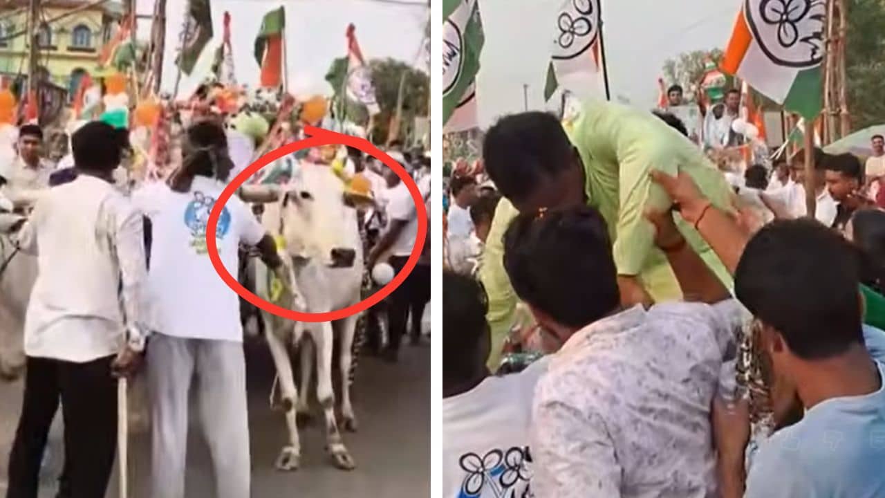Viral Video: TMC সাংসদ তখনও বসে, হঠাৎ গাড়ি ফেলে দৌড়ে পালাল দুই গরু, দেখুন কী হল তারপর…