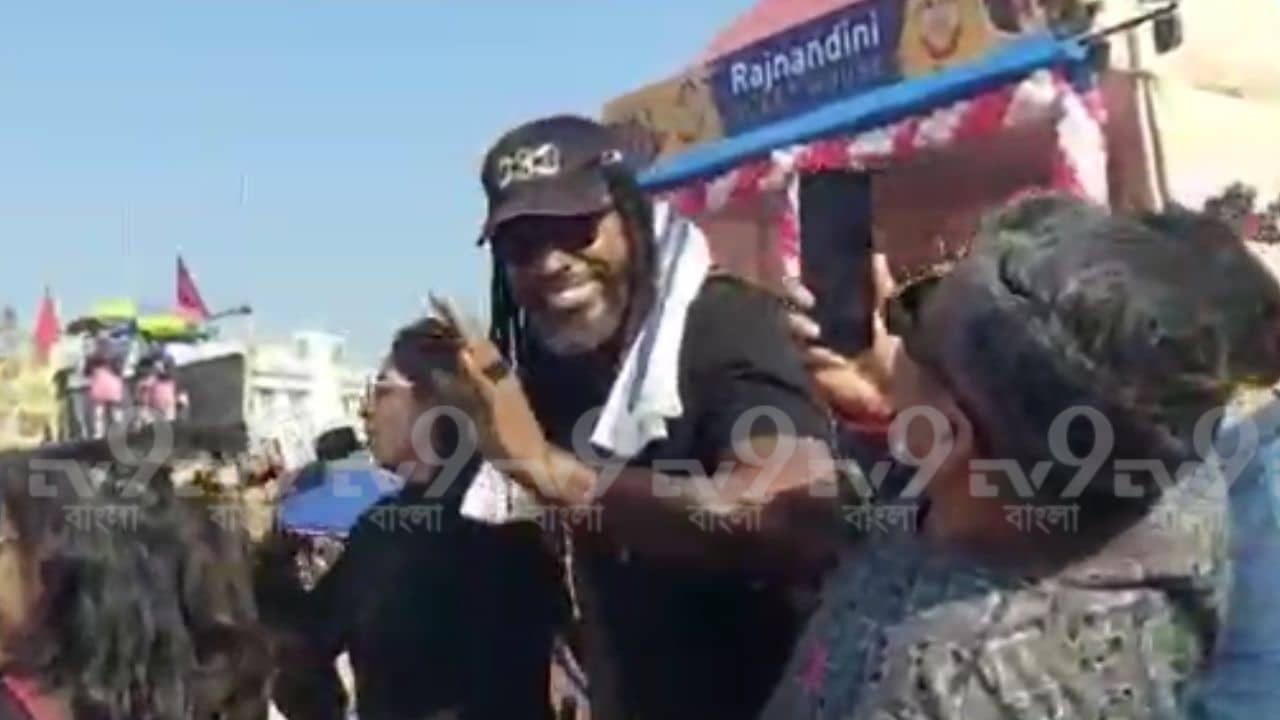 পূর্ব বর্ধমান: ভারতে এসেছেন, তবে বর্ধমানে এই প্রথমবার পা রাখলেন ক্যারিবিয়ান তারকা ক্রিস গেইল (Chris Gayle)। ছুটির রবিবারে হালকা শীতের আদর গায়ে জড়িয়ে ‘দ্য ইউনিভার্স বস’কে দেখতে উপচে পড়া ভিড় ছিল বর্ধমানের মালির মাঠে। আর এই গেইল-ঝড় সামাল দিতে গিয়ে কার্যত বেসামাল আয়োজকরা। চরম বিশৃঙ্খলার অভিযোগ উঠল এই অনুষ্ঠানকে ঘিরে। অভিযোগ, দর্শকদের হুড়োহুড়িতে কার্যত পদপিষ্ট হওয়ার পরিস্থিতি তৈরি হয়। নাকানিচোবানি খেতে হয় পুলিশ প্রশাসনকে। একটা সময় উন্মত্ত দর্শক পুলিশের ব্যারিকেড পর্যন্ত ভেঙে ফেলে। বর্ধমানের মালির মাঠে ফি বছর অনুষ্ঠিত হয় রাজনন্দিনী কাপ। টেনিস বলের এই টুর্নামেন্ট ঘিরে এদিন বর্ধমানে হুড়োহুড়ি।