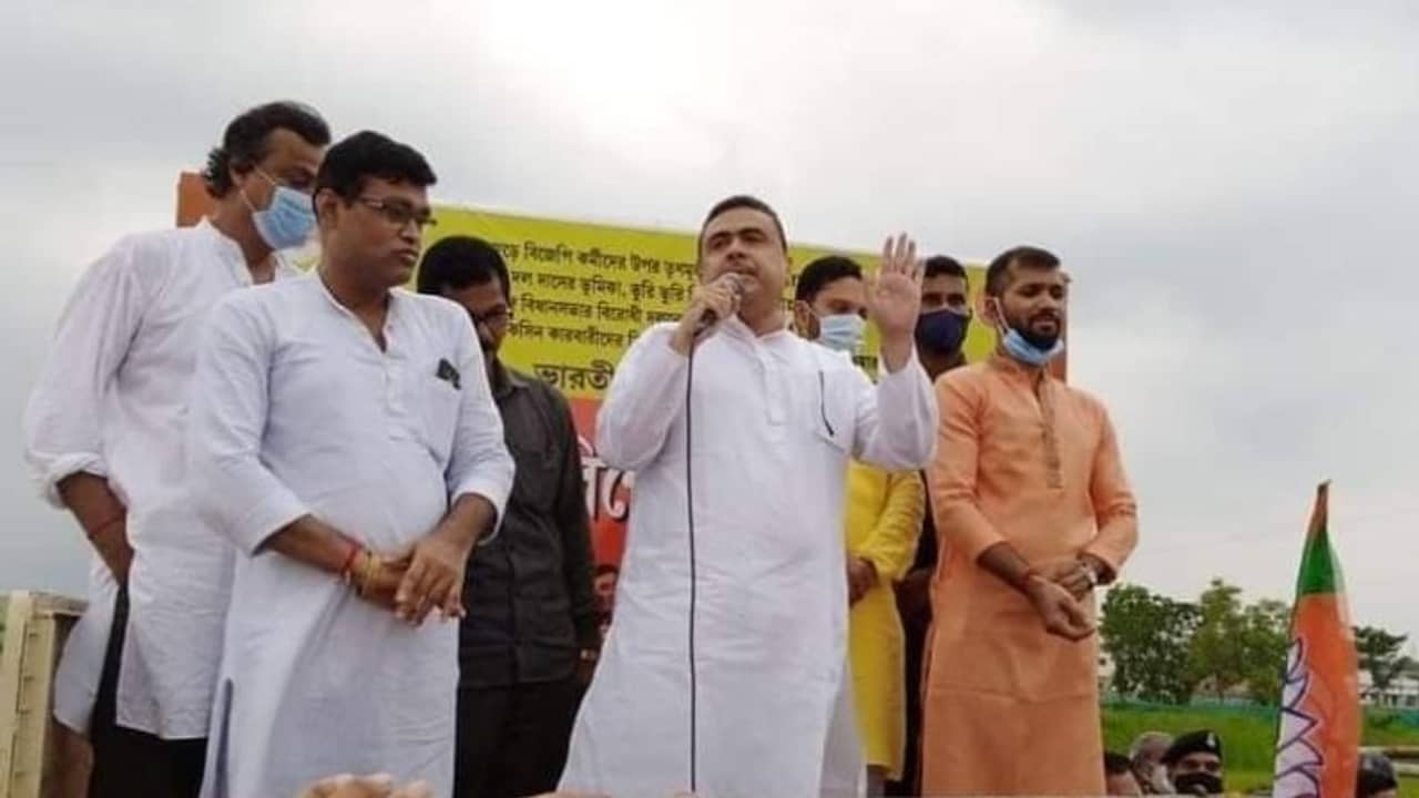 পূর্ব মেদিনীপুর জেলায় বিধানসভা নির্বাচনের ফল প্রকাশের পর তাঁদের কর্মী ও সমর্থকদের ওপর তৃণমূল আশ্রিত দুষ্কৃতীরা আক্রমণ, পুলিশের নিষ্ক্রিয়তা এবং বিভিন্ন মিথ্যে মামলা দিয়ে দলের কার্যকর্তাদের গ্রেফতারের অভিযোগে সোমবার তমলুকের নিমতৌড়ীর এসপি অফিসের সামনে সভা করেন শুভেন্দু। সেখানে তাঁর সঙ্গে ছিলেন জেলার বাকি বিজেপি বিধায়করাও।