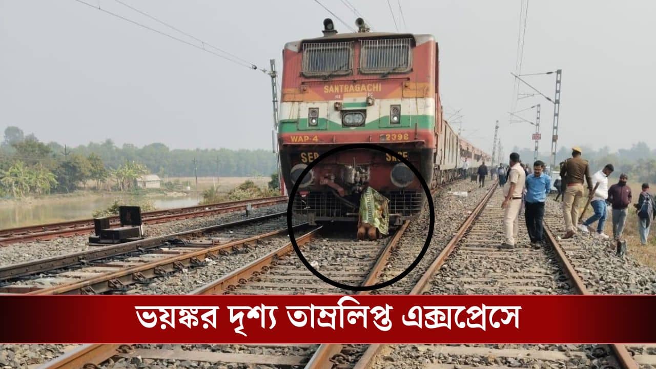 পূর্ব মেদিনীপুর: হাড়হিম ঘটনা ঘটল তাম্রলিপ্ত এক্সপ্রেসে (Tamralipta Express)। চলন্ত ট্রেনের ইঞ্জিনে আটকে রয়েছে এক মহিলার ছিন্নভিন্ন দেহ। সেই অবস্থাতেই দিঘা অভিমুখে ছুটে চলল ১২৮৫৭ আপ তাম্রলিপ্ত এক্সপ্রেস। যা দেখে কার্যত শিউরে উঠলেন সকলে।