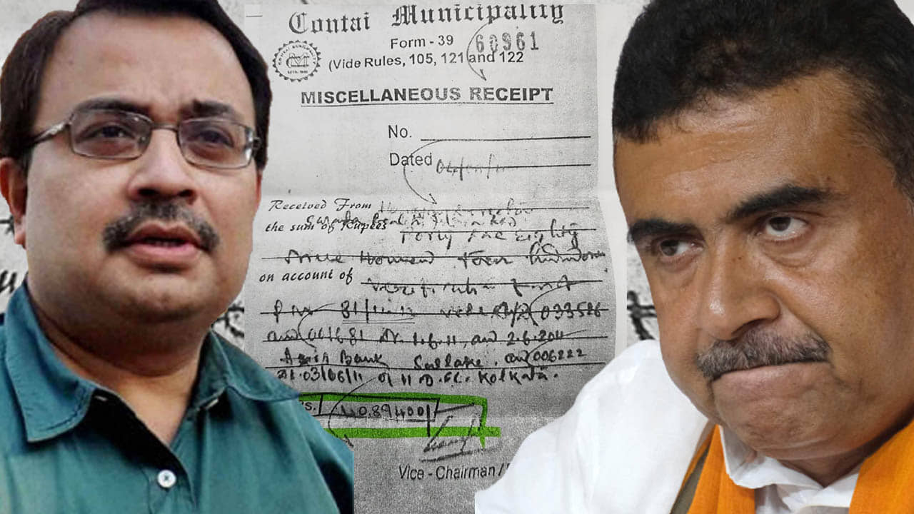 ২০১১ সালে কাঁথি পুরসভার ২০ নম্বর ওয়ার্ডে ১১৬বি জাতীয় সড়কের ধারে সারদাকে বহুতল আবাসন প্রকল্প তৈরির অনুমোদন দেওয়ার অভিযোগ উঠেছিল কাঁথি পুরসভার বিরুদ্ধে। সে সময় পুরসভার চেয়ারম্যান ছিলেন শুভেন্দুর ভাই সৌমেন্দু অধিকারী। এ দিন সৌমেন্দুর সই থাকা পুরসভার মানি রিসিট দেখিয়ে সারদা কর্তার থেকে বিপুল পরিমাণ টাকা নেওয়ার অভিযোগ তোলেন কুণাল। তিনি বলেছেন, “সারদাকে কাঁথিতে শুভেন্দু সৌমেন্দু নিয়ে এসেছিল। বহুতল তৈরির জন্যে সুদীপ্ত সেনকে ভুল বুঝিয়ে রসিদের বাইরেও লক্ষ লক্ষ, কোটি কোটি টাকা নেওয়া হয়েছে। কাঁথি পুরসভায় চার তলার বেশি বাড়ি তৈরির অনুমোতি দেওয়ার ক্ষমতা না থাকা সত্বেও ২২তলা আবাসন তৈরির প্ল্যান অনুমোদন করে দেওয়ার আশ্বাস দিয়ে শুভেন্দু, সৌমেন্দুরা টাকা নিয়েছে।“