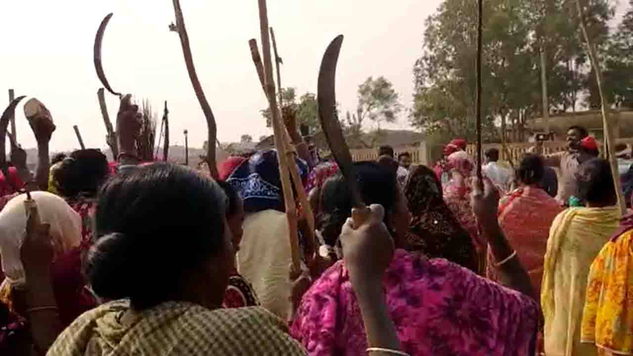 বীরভূম : খনি প্রকল্পের বিরুদ্ধে আরও তীব্র হচ্ছে প্রতিবাদ। শনিবার সকালে দেখা গেল ফের মিছিল শুরু হয়েছে আদিবাসী মহিলাদের। লাঠি-তির-ধনুক নিয়ে মিছিলে নেমেছেন মহিলারা। পুলিশি জুলুমের প্রতিবাদে তাঁদের এই মিছিল বলে মনে করা হচ্ছে। গত বৃহস্পতিবার আট আদিবাসী মহিলাকে নির্মমভাবে মেরে রক্তাক্ত করার অভিযোগ উঠেছে। দেউচা পাচামির ঘটনায় পুলিশের বিরুদ্ধে এমনই অভিযোগ ওঠে। তারই প্রতিবাদে শনিবারের এই মিছিল।