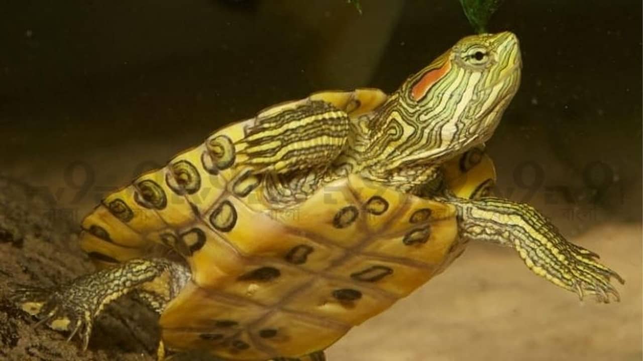 দক্ষিণ ২৪ পরগনা: গায়ে তার হরেক রঙের বাহার। জ্বলজ্বলে সোনালি রঙে মনোমুগ্ধকর এই সরীসৃপ। পোষ্য হিসেবেও সুখ্য়াতি আছে এই কচ্ছপের। আদতে এর নাম ‘রাক্ষুসে কচ্ছপ’। নিবাস মেক্সিকো, দক্ষিণ আমেরিকা এবং মিসিপ্পি নদীতে। সেই ‘রাক্ষুসে কচ্ছপের’ হদিশ পাওয়া গেল জয়নগরে। বুধবার সকালে, জয়নগর থানার চালতাবেড়িয়া হাই স্কুলের পাশে এই বিরল প্রজাতির কচ্ছপটিকে দেখতে পান গ্রামবাসীরা। তৎক্ষণাৎ, সেই ‘বিরাট বপু’ কচ্ছপটিকে ধরে নিয়ে গিয়ে পুলিশের হাতে তুলে দেন তাঁরা।
