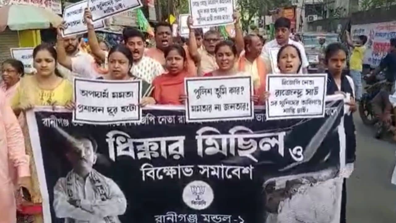বৃহস্পতিবার রানিগঞ্জের ডলফিন ময়দান থেকে এক বিক্ষোভ মিছিল করে রানিগঞ্জ শহর ঘুরে রানিগঞ্জ থানার গেটে বিক্ষোভ দেখায় বিজেপি। এদিন তারা বিজেপির জেলা সভাপতি দিলীপ দে’র নেতৃত্বে রানিগঞ্জ থানার সামনে রাজ্যের শাসকদল তৃণমূল ও পুলিশ প্রশাসনকে কটাক্ষ করেন। বিক্ষোভ কর্মসূচি শেষে রানিগঞ্জ থানার আধিকারিকের হাতে বিজেপি একটি দাবিপত্র তুলে দেয়। থানার আধিকারিক সুদীপ দাশগুপ্ত এ বিষয়ে দ্রুত ব্যবস্থা গ্রহণ করা হবে বলে আশ্বাস দিয়েছেন বলে জানান বিজেপি শহর মণ্ডলের সভাপতি দেবজিৎ খাঁ।