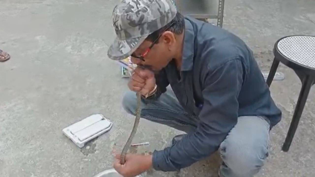 যে মেয়ে বউরা বাড়িতে ছিলেন, তারাই কিছুটা কার্বলিক অ্যাসিড এনে ওই র্যাট স্নেকের উপর ঢেলে দেয়। এরপরই বিষের জ্বালায় জ্বলতে থাকে সাপের শরীর। ছটফট করতে থাকে। ঘর থেকে বেরিয়ে সোজা নিয়ে বাড়ির তুলসী মঞ্চের কাছে ঠাঁই নেয়। সেখানে একেবারে নেতিয়ে পড়ে ওই সাপ। এরপরই খবর দেওয়া হয় পরিবেশ কর্মী বিশ্বজিৎ দত্ত চৌধুরীকে।