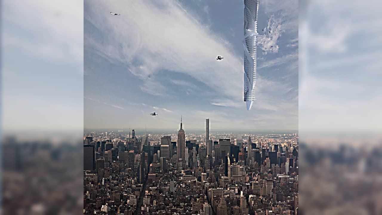 এই অত্যাশ্চর্য ভবনটির ধারণাগত ছবিগুলিতে দেখা যাচ্ছে বিশাল সাদা ভবনটি মেঘেরও উপরে অবস্থান করছে। ভবনটি হাজার হাজার মিটার উঁচুতে বাতাসে ভাসছে। পরিকল্পনা অনুযায়ী ভবনটি মাটি থেকে ৩,৪০০ মিটার উঁচুতে ঝুলে থাকবে। শুধুমাত্র ড্রোন মাধ্যমে যাওয়া যাবে ভবনটিতে।