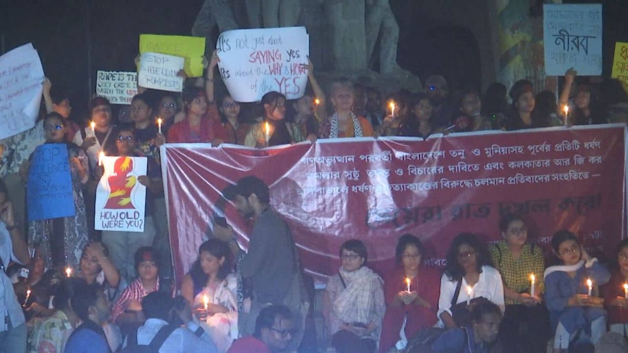 শুক্রবার মধ্য রাতে ঢাকা বিশ্ববিদ্যালয়ে জমায়েত হয় বিভিন্ন কলেজ ও বিশ্ববিদ্যালয়ের ছাত্র-ছাত্রীরা। তারা সেখানে কলকাতার চিকিৎসক-পড়ুয়ার সুবিচারের দাবিতে সুর চড়ান। পরে মোমবাতি জ্বালিয়ে প্রতিবাদ কর্মসূচি পালন করেন।