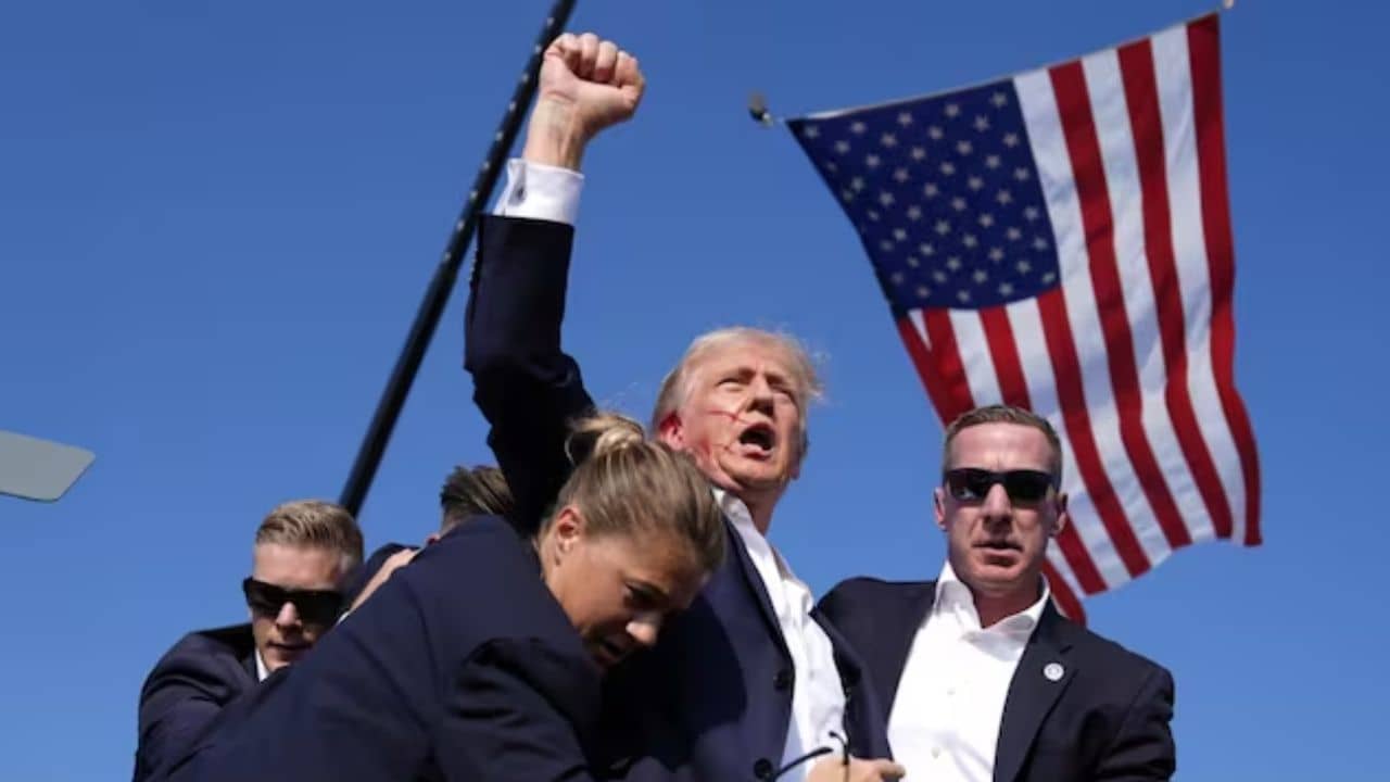 যখন ট্রাম্পকে ধরে স্টেজ থেকে নামানো হচ্ছে, সেই সময়ই কানের পাশ, গালে রক্ত লক্ষ্য করা যায়। তবে প্রাক্তন প্রেসিডেন্টের গুলি লাগেনি বলেই জানা গিয়েছে। নামার সময় হাত উঁচিয়ে, মুঠো করে হার না মানার ইঙ্গিত করে দেখান ট্রাম্প।
