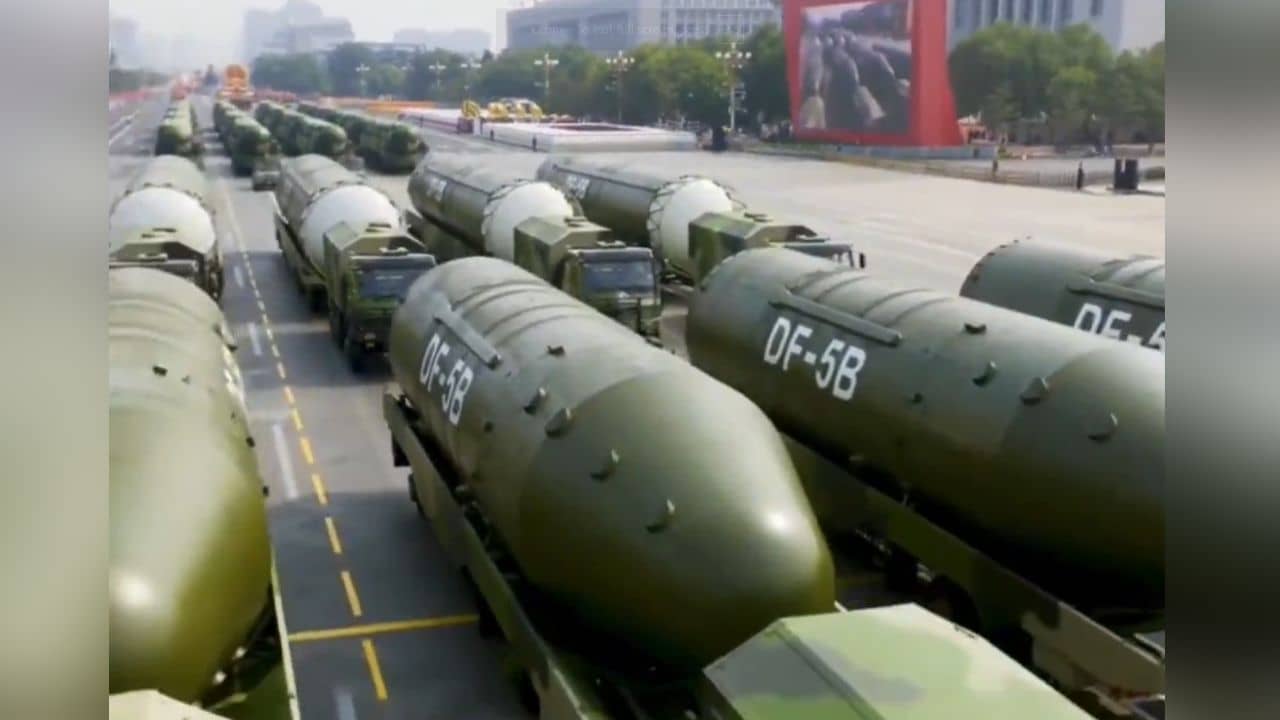 নিজেদের সামরিক শক্তি কালেভদ্রে প্রকাশ্যে আনে চিন। কিন্তু যখন আনে, বাকি বিশ্ব হাঁ করে তাকিয়ে দেখে। তেমনই এক বিরল মুহূর্তের সাক্ষী থাকল দুনিয়া। ৩ জুন, নিজেদের সবচেয়ে মারাত্মক পরমাণু হাতিয়ার নিয়ে বেজিংয়ের রাজপথে নিজেদের শক্তি প্রদর্শন করল চিনা লালফৌজ। মোবাইল লঞ্চারে চাপিয়ে রাজপথে প্যারেড করানো হল কয়েকশো ডিএফ-৫বি ব্যালিস্টিক মিসাইল-কে। এক একটি মিসাইল ৩-৪ টন পর্যন্ত পরমাণু বোমা বহনে সক্ষম।