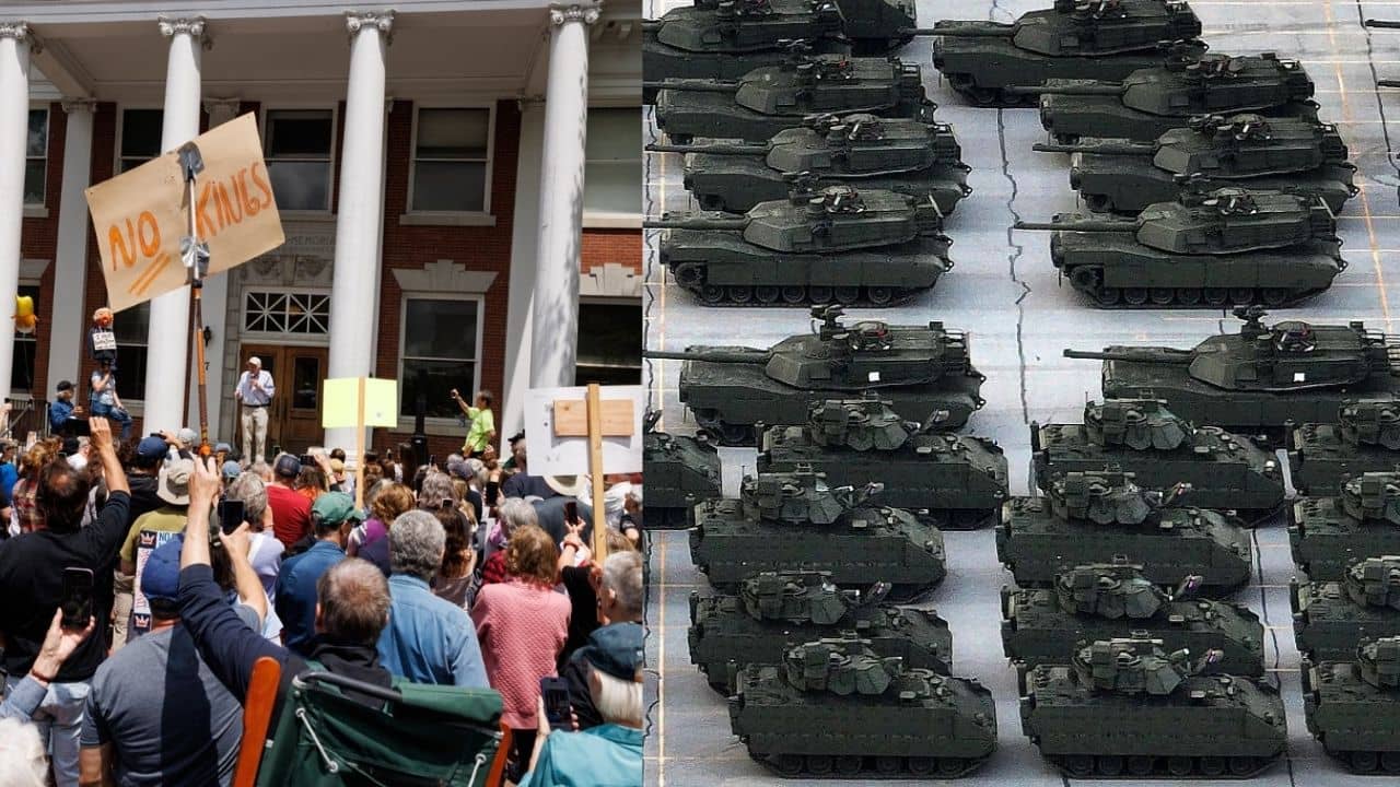 দ্বিতীয় বিশ্বযুদ্ধের পর এত বড় সেলিব্রেশন আমেরিকা জুড়ে হয়নি বলে দাবি ট্রাম্প প্রশাসনের। আনুমানিক ২ লাখেরও বেশি ভিড় হবে ধরে নিয়ে যাবতীয় প্রস্তুতি নিয়েছে সরকার। মোতায়েন করা হয়েছে অতিরিক্ত নিরাপত্তা। তার একটা বড় কারণ, আমেরিকার অন্তত ১৫০০টি শহরে ক্রমশ ছড়িয়ে পড়ছে ‘নো কিংস মুভমেন্ট’। প্রতিবাদীরা ট্রাম্প সরকারের দমনপীড়ন ও অনৈতিক সিদ্ধান্তের বিরুদ্ধে প্রতিবাদ জানাতে বেছে নিয়েছেন ১৪ জুনকেই। প্রতিবাদীদের দাবি, ট্রাম্প তাঁর জন্মদিনে ওয়াশিংটনের রাস্তায় ট্যাঙ্ক নামাচ্ছেন, কিন্তু উনি ভুলে যাচ্ছেন, সব ক্ষমতা এখন আর ওয়াশিংটনের হাতে কেন্দ্রীভূত নেই। সর্বত্র ছড়িয়ে পড়েছে। অবৈধ অভিবাসীদের বিরুদ্ধে ট্রাম্প প্রশাসনের ধরপাকড়ের বিরুদ্ধে সরব প্রতিবাদীরা। সেই সঙ্গে সরকারি চাকরি থেকে ছাঁটাই, সরকারে দুর্নীতির অভিযোগ তো রয়েছেই।