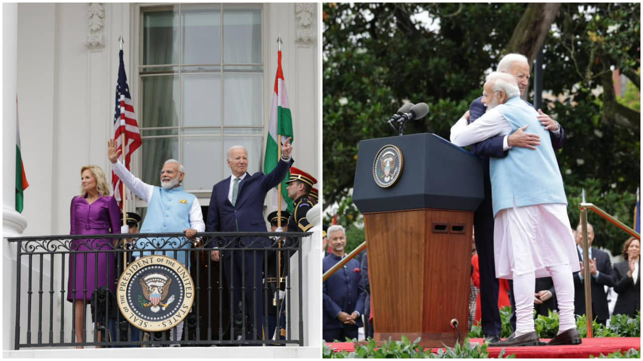 হোয়াইট হাউসের অভ্যর্থনায় অভিভূত প্রধানমন্ত্রী মোদী জানান, এই সম্মানে গর্বিত ১৪০ কোটি ভারতবাসী। এদিন প্রধানমন্ত্রী মোদীর আগমন উপলক্ষ্যে হোয়াইট হাউসে জড়ো হন ভারতীয়-মার্কিন সম্প্রদায়ের বহু মানুষ। উপস্থিত ছিলেন ভাইস প্রেসিডেন্ট কমলা হ্যারিস-সহ বাইডেন প্রশাসনের বেশ কয়েকজন শীর্ষ কর্তা। জাতীয় নিরাপত্তা উপদেষ্টা অজিত ডোভাল, বিদেশ সচিব বিনয় কোয়াত্রা, আমেরিকায় নিযুক্ত ভারতর রাষ্ট্দূত তরণজিৎ সান্ধুও। উপস্থিত জনতার উদ্দেশে মোদী বলেন, “প্রধানমন্ত্রী হওয়ার পর আমি অনেকবার হোয়াইট হাউসে এসেছি। কিন্তু, এত ভারতীয়-মার্কিন সম্প্রদায়ের জন্য এই প্রথম হোয়াইট হাউসের দরজা খুলে দেওয়া হল।” দুর্দান্ত অভ্যর্থনার জন্য প্রেসিডেন্ট বাইডেনকে ধন্যবাদ জানান প্রধানমন্ত্রী মোদী।