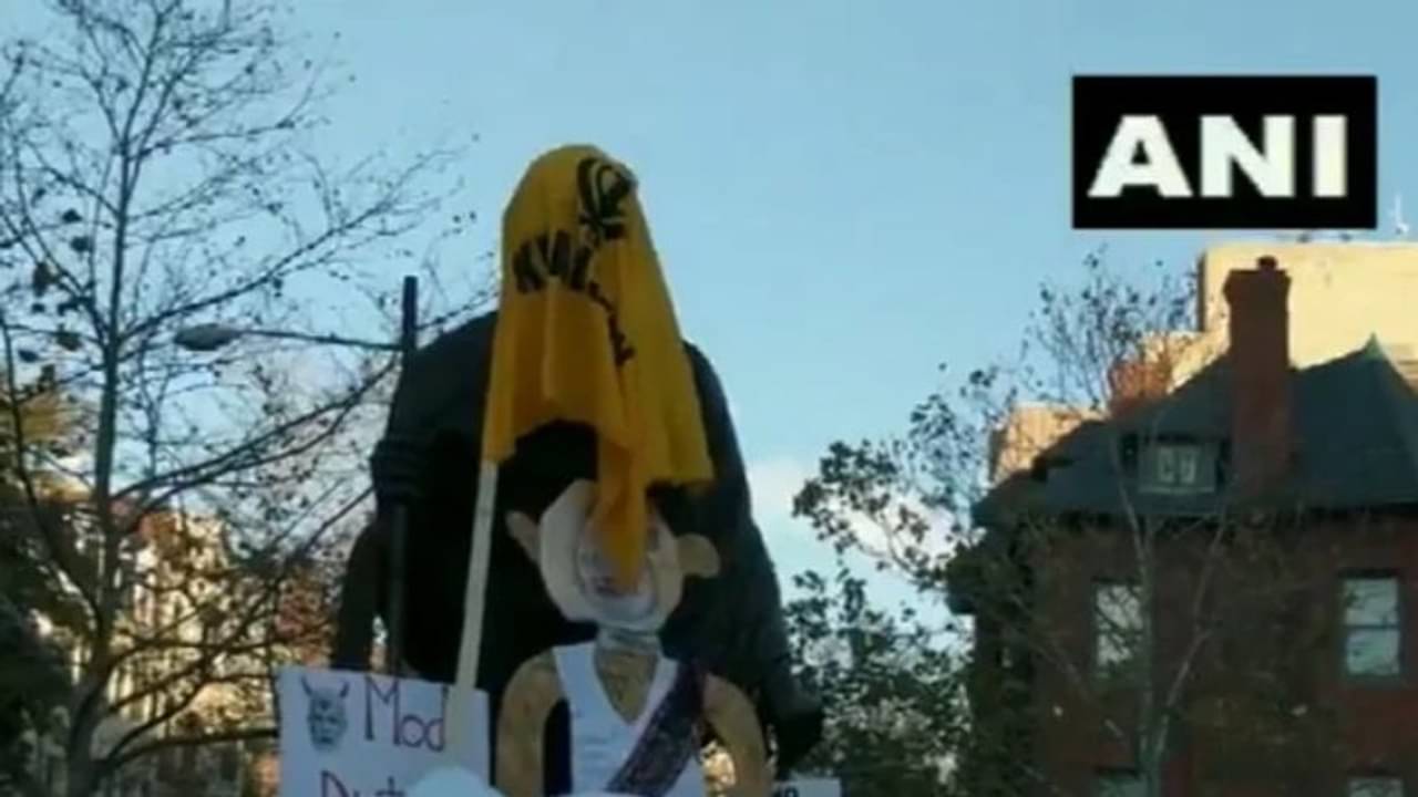তখনই এক দল অল্প বয়সী খালিস্তানিরা চড়াও হয় গান্ধী মূর্তিতে। খালিস্তানি পতাকায় ঢেকে ফেলে মহাত্মা গান্ধীর মুখ। শুধু তাই নয়, গান্ধী মূর্তির গলায় ঝুলিয়ে দেওয়া হয় নরেন্দ্র মোদীর পোস্টার। সব মিলিয়ে উত্তপ্ত হয়ে ওঠে ওয়াশিংটনে গান্ধী মূর্তির পাদদেশ।