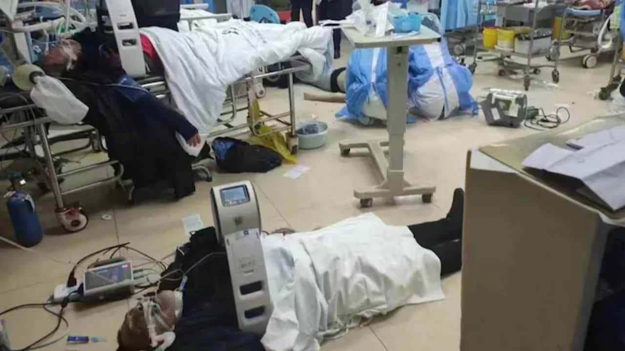 বেজিং: গত কয়েক দিন ধরেই চিনে হুহু করে বেড়েছে করোনাভাইরাসে আক্রান্তের সংখ্যা। পরিস্থিতি হঠাৎ করেই খারাপ হয়েছে সেখানে। সম্প্রতি একটি ভিডিয়ো ভাইরাল হয়েছে চিনের। সেখানে দেখা যাচ্ছে, হাসপাতালের ওয়ার্ডের সমস্ত শয্যা ভর্তি। কিছু কোভিড আক্রান্ত রোগীরা শুয়ে রয়েছেন ওয়ার্ডের মেঝেতে। সেখানেই তাঁদের দেওয়া হয়েছে সিপিআর (কার্ডিওপালমোনারি রিসাকসিনেশন)। এই ঘটনা মনে করিয়ে দিচ্ছে কোভিডের দ্বিতীয় ঢেউয়ে ভারতের বিভিন্ন রাজ্যের হাসপাতালের অবস্থা। তখনও ভারতে সক্রিয় রোগীর সংখ্যা এত বেড়ে গিয়েছিল, এবং এত বেশি মানুষকে হাসপাতালে ভর্তির প্রয়োজন হয়েছিল, যে শয্যা বাড়িয়েও তা সামাল দেওয়া যায়নি। সেই পরিস্থিতি এখন তৈরি হয়েছে চিনেও। করোনা সংক্রমণের এই বাড়বাড়ন্ত নিয়ে বিশ্ব জুড়েই নতুন করে উদ্বেগ বাড়ছে।