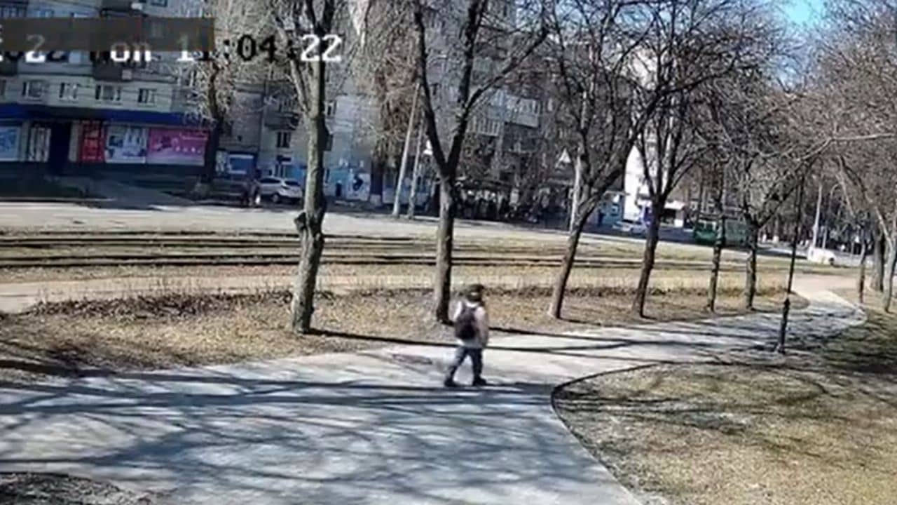 CCTV footage showed the moment the building exploded, shocking a passer-by.#Ukraine | #Kyiv | #russianinvasion pic.twitter.com/oBrQKIj7dK