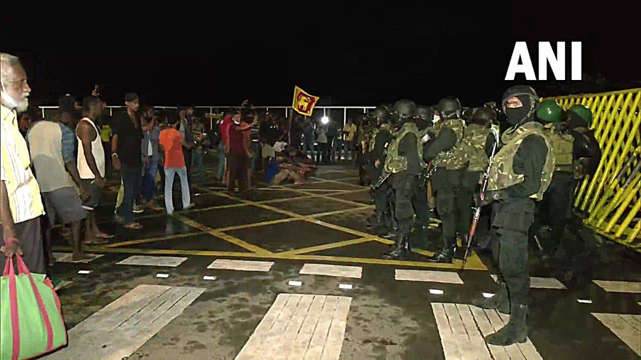 #WATCH | Sri Lanka: Massive confrontation erupts between protestors and armed security personnel as the latter sets up barricading outside the premises of the Sri Lankan Presidential Secretariat in Colombo #SriLanka pic.twitter.com/5sUoy8zRmN