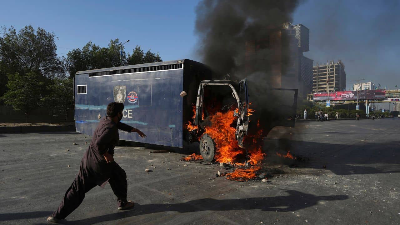Mass riots rage in Pakistan.Clashes, headquarters fires, assaults and car hijackings in several Pakistani cities following the arrest of Imran Khan . pic.twitter.com/07Di9XU2io