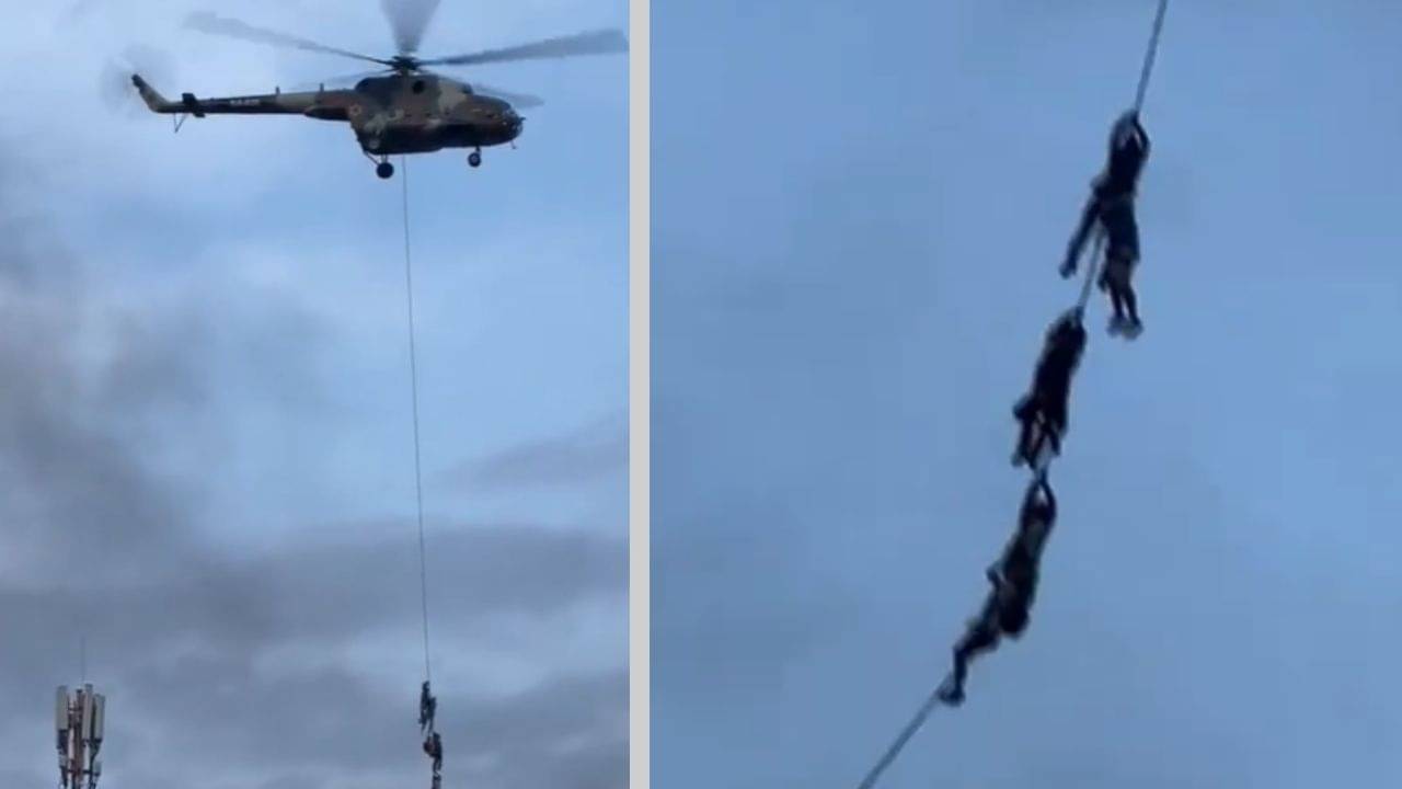 আরেকটি ভাইরাল ভিডিয়োয় দেখা গিয়েছে, সেনা হেলিকপ্টারে করে কয়েকজন মন্ত্রী ও তাঁদের পরিবারের সদস্যদের উদ্ধার করে আনা হচ্ছে। সরকারি আধিকারিকদেরও হেলিকপ্টারে ঝুলতে ঝুলতে পালিয়ে যেতে দেখা যায়।