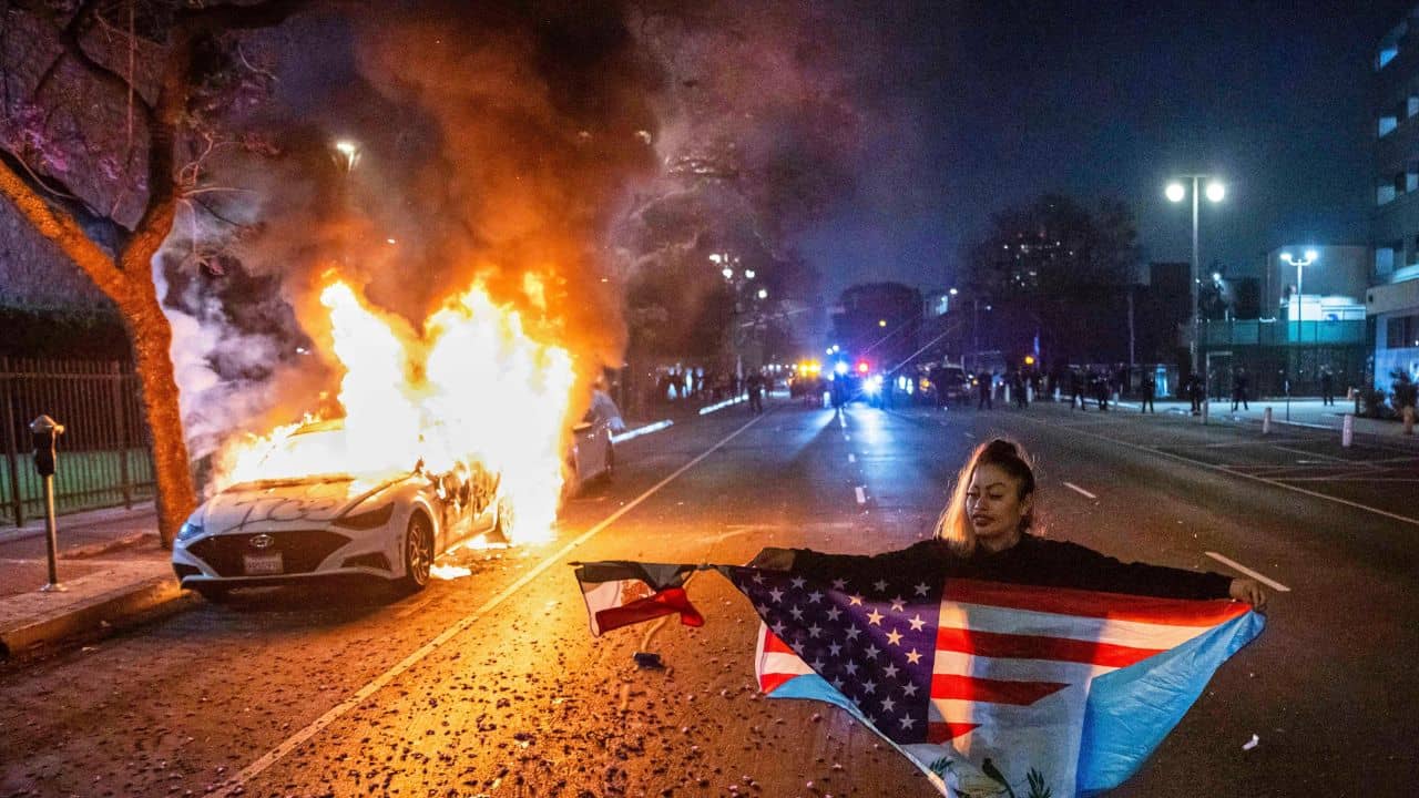 লস অ্যাঞ্জেলস সিটি পুলিশের ব্রিফিংয়ে দাবি করা হয়েছে ১০০-র বেশি গাড়ি, বাস জ্বালিয়ে দিয়েছে বিক্ষোভকারীরা। সরকারি কর্মীদের বাড়ি, অফিস এমনকী ব্যবসায়িক প্রতিষ্ঠান, দোকানেও হামলা হচ্ছে। যদিও লস অ্যাঞ্জেলসের বাসিন্দারা সোশ্যাল মিডিয়ায় দাবি করছেন, ৩০০-র উপর গাড়ি জ্বালানো হয়েছে। রাস্তায় যখন তখন গুলির শব্দ শোনা যাচ্ছে। অভিবাসীদের গ্রেফতারির বিরুদ্ধে চলছে বিক্ষোভ। সেটাই এখন দাঙ্গার আকার নিয়েছে